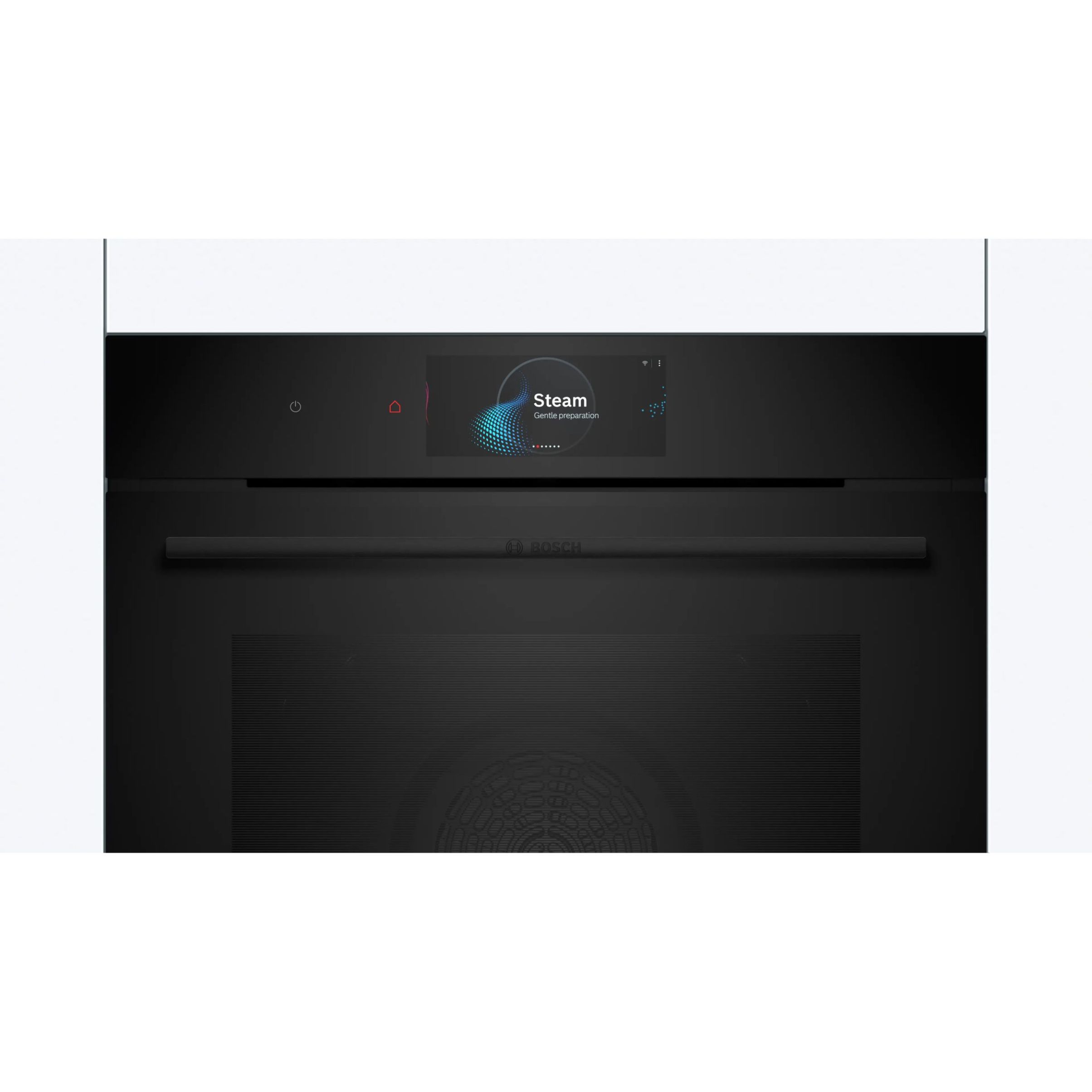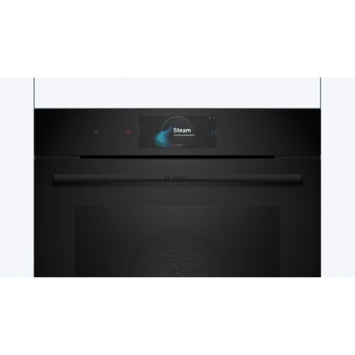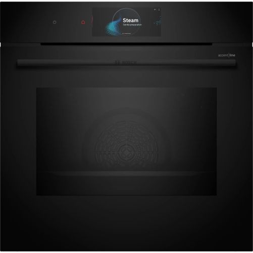 Cuptoarele Seria 8 din gama accent line sunt extrem de uşor de utilizat. Datorită finisajului lor complet negru, se potrivesc perfect cu orice mobilier de bucătărie, indiferent de stil. Iar inelul digital pentru comenzi este nu doar practic, ci şi conferă un plus de stil bucătăriei tale: acesta are un design minimalist atunci când este dezactivat şi se aprinde în culori calde atunci când este activat. De asemenea, navigarea în meniul cuptoarelor Seria 8 din gama accent line este extrem de simplă: poţi seta extrem de rapid şi uşor procesul de preparare şi temporizatorul direct pe afişajul tactil mare. Uşa cu geam fumuriu completează ingenios aspectul ultra-modern şi neted al cuptoarelor, iar tu poţi vedea în permanenţă preparatele din cuptor în timp ce acestea sunt gătite.