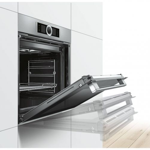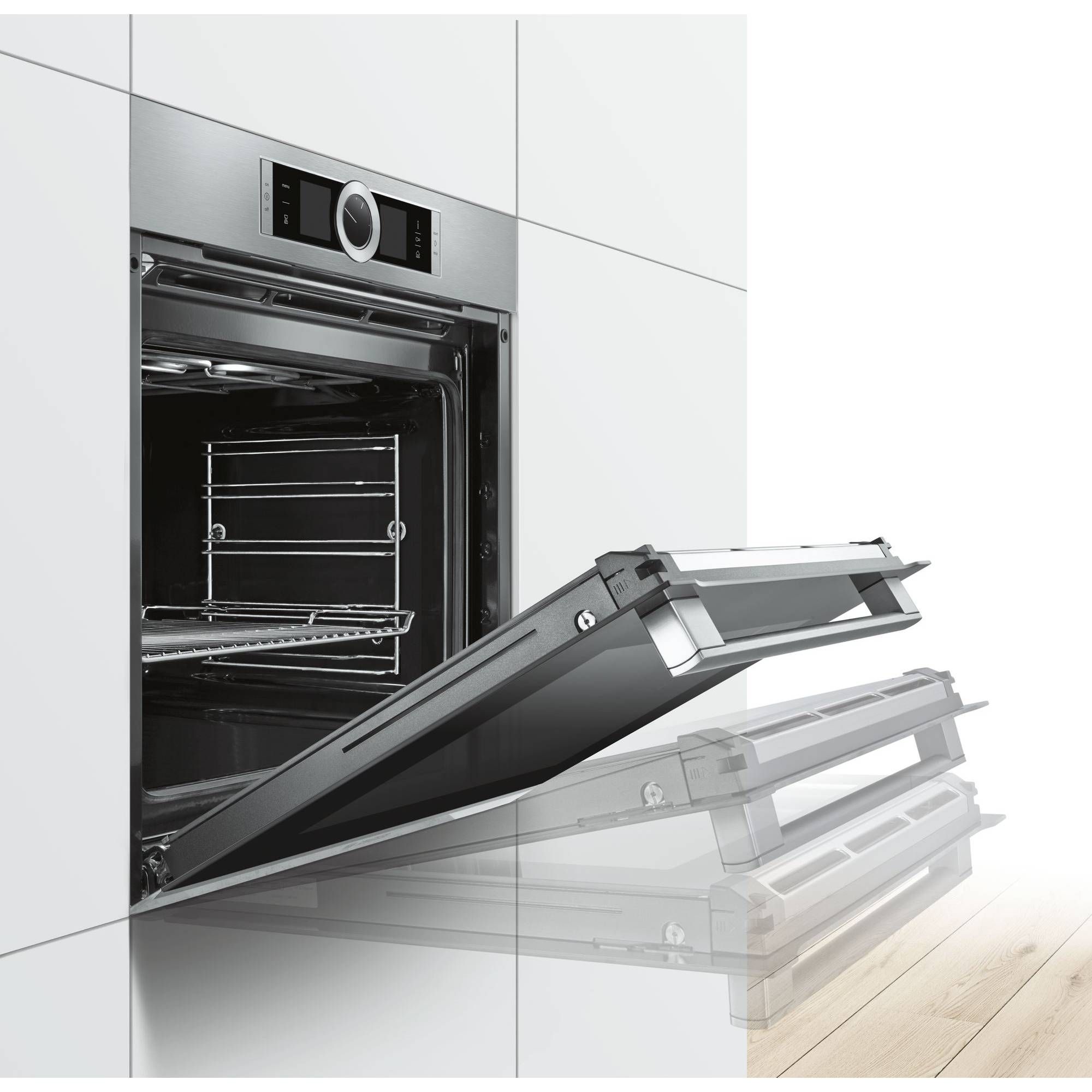 Ușile cuptorului sunt acum mai convenabile ca niciodată: un mecanism special de amortizare împiedică închiderea zgomotoasă a ușilor cuptorului. Pe măsură ce împingi ușor ușa, aceasta se oprește chiar înainte de închidere, apoi se închide singură ușor și liniștit, garantând astfel o viață lungă, atât pentru cuptorul tău, cât și pentru ușa cuptorului.
