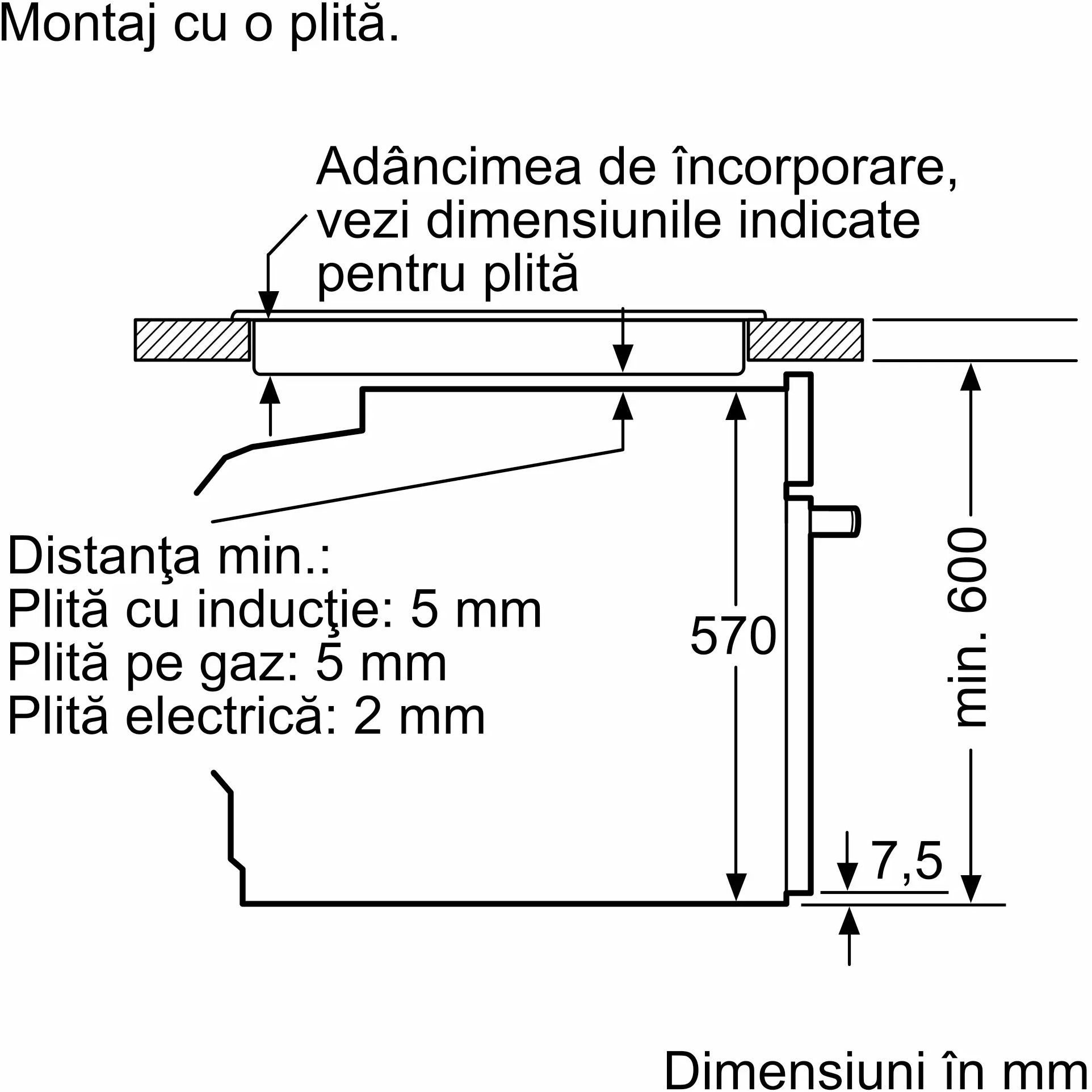 Dimensiuni nișă (ÎxLxA): 560 mm - 568 mm x 585 mm - 595 mm x 550 mm
