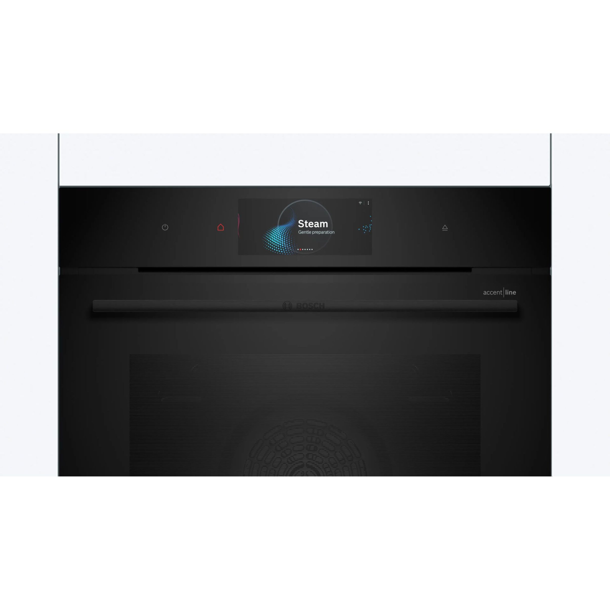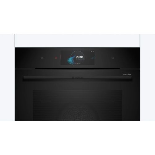 Cuptoarele Seria 8 din gama accent line sunt extrem de uşor de utilizat. Datorită finisajului lor complet negru, se potrivesc perfect cu orice mobilier de bucătărie, indiferent de stil. Iar inelul digital pentru comenzi este nu doar practic, ci şi conferă un plus de stil bucătăriei tale: acesta are un design minimalist atunci când este dezactivat şi se aprinde în culori calde atunci când este activat. De asemenea, navigarea în meniul cuptoarelor Seria 8 din gama accent line este extrem de simplă: poţi seta extrem de rapid şi uşor procesul de preparare şi temporizatorul direct pe afişajul tactil mare. Uşa cu geam fumuriu completează ingenios aspectul ultra-modern şi neted al cuptoarelor, iar tu poţi vedea în permanenţă preparatele din cuptor în timp ce acestea sunt gătite.