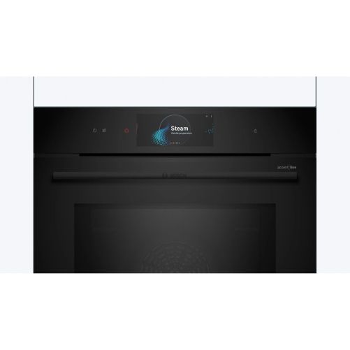 Cuptoarele Seria 8 din gama accent line sunt extrem de uşor de utilizat. Datorită finisajului lor complet negru, se potrivesc perfect cu orice mobilier de bucătărie, indiferent de stil. Iar inelul digital pentru comenzi este nu doar practic, ci şi conferă un plus de stil bucătăriei tale: acesta are un design minimalist atunci când este dezactivat şi se aprinde în culori calde atunci când este activat. De asemenea, navigarea în meniul cuptoarelor Seria 8 din gama accent line este extrem de simplă: poţi seta extrem de rapid şi uşor procesul de preparare şi temporizatorul direct pe afişajul tactil mare. Uşa cu geam fumuriu completează ingenios aspectul ultra-modern şi neted al cuptoarelor, iar tu poţi vedea în permanenţă preparatele din cuptor în timp ce acestea sunt gătite.