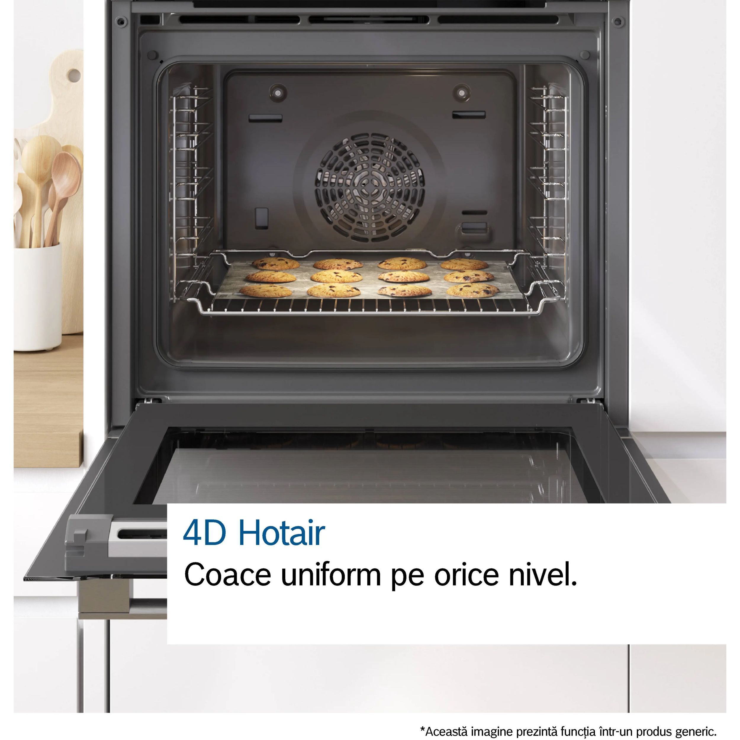 Coacerea preparatelor nu a fost niciodată mai simplă.Selectează un fel de mâncare, cum ar fi „Brioșe", apasă butonul „Start" și cuptorul va prelua controlul imediat.Partea cea mai bună: datorită inteligenței artificiale și a senzorului de coacere care măsoară umiditatea din interiorul cuptorului, poți vedea câte minute au mai rămas până când preparatul tău este gata să fie servit. Pentru a te bucura de funcția PerfectBake Plus, trebuie doar să conectezi cuptorul la contul înregistrat pe Home Connect.