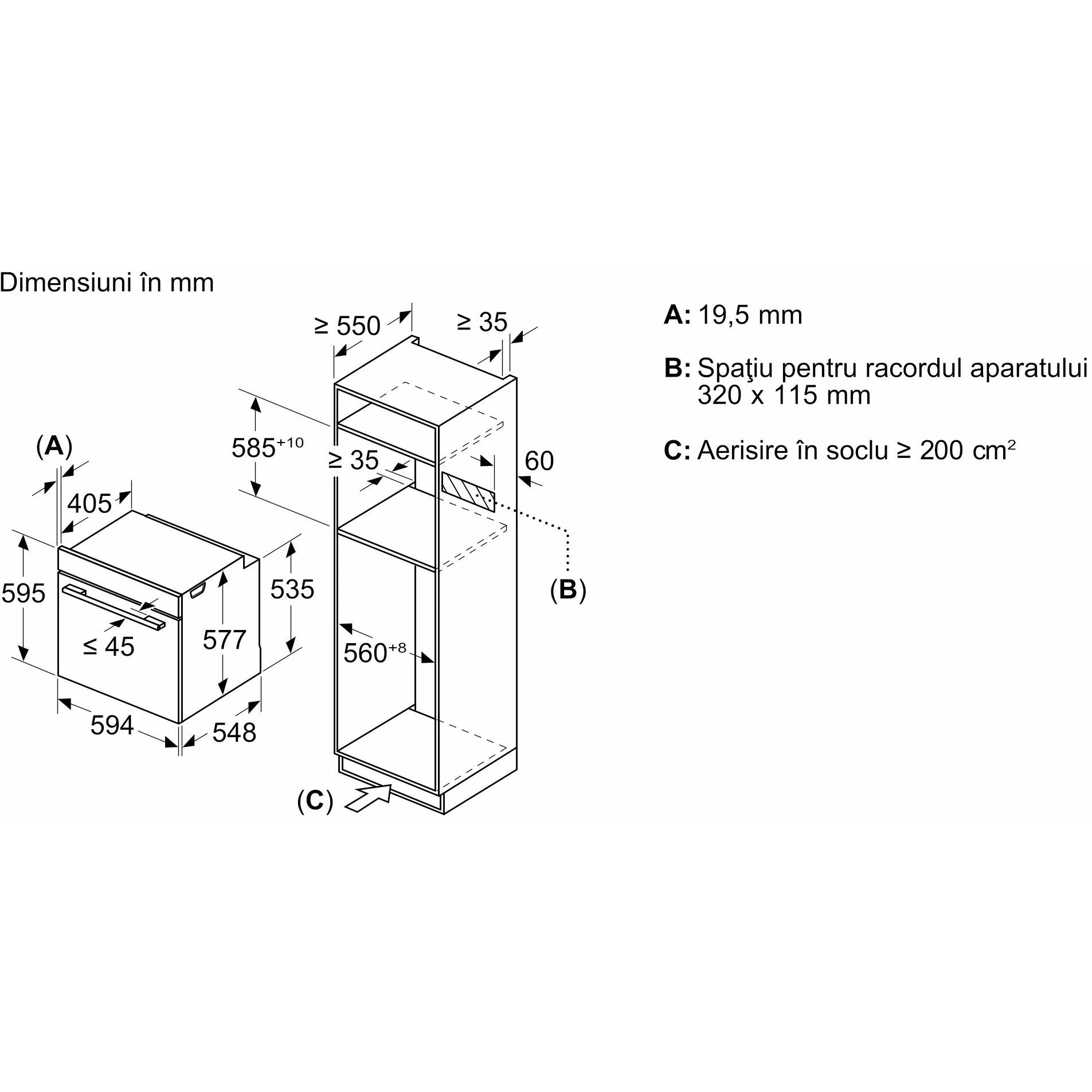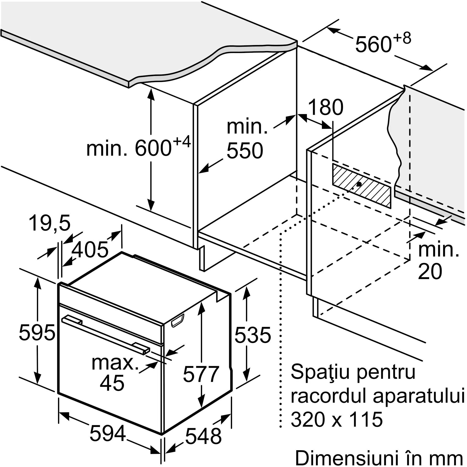 - Dimensiuni nișă (ÎxLxA): 560 mm - 568 mm x 585 mm - 595 mm x 550 mm