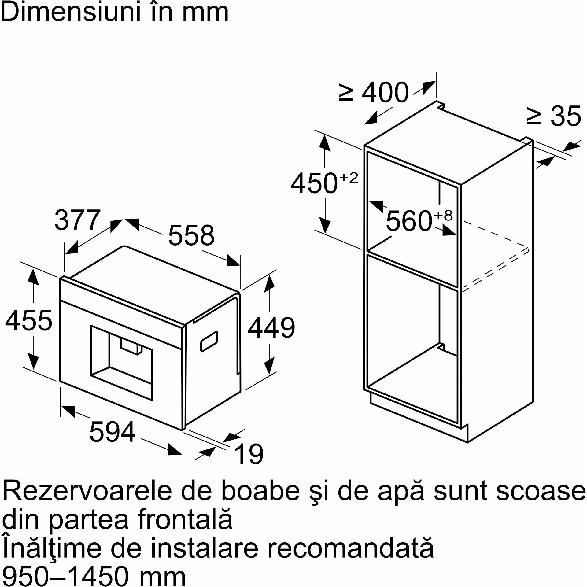 Distribuitor cafea și dispozitiv spumare lapte ajustabile pe înălțime (până la 15cm (max) )