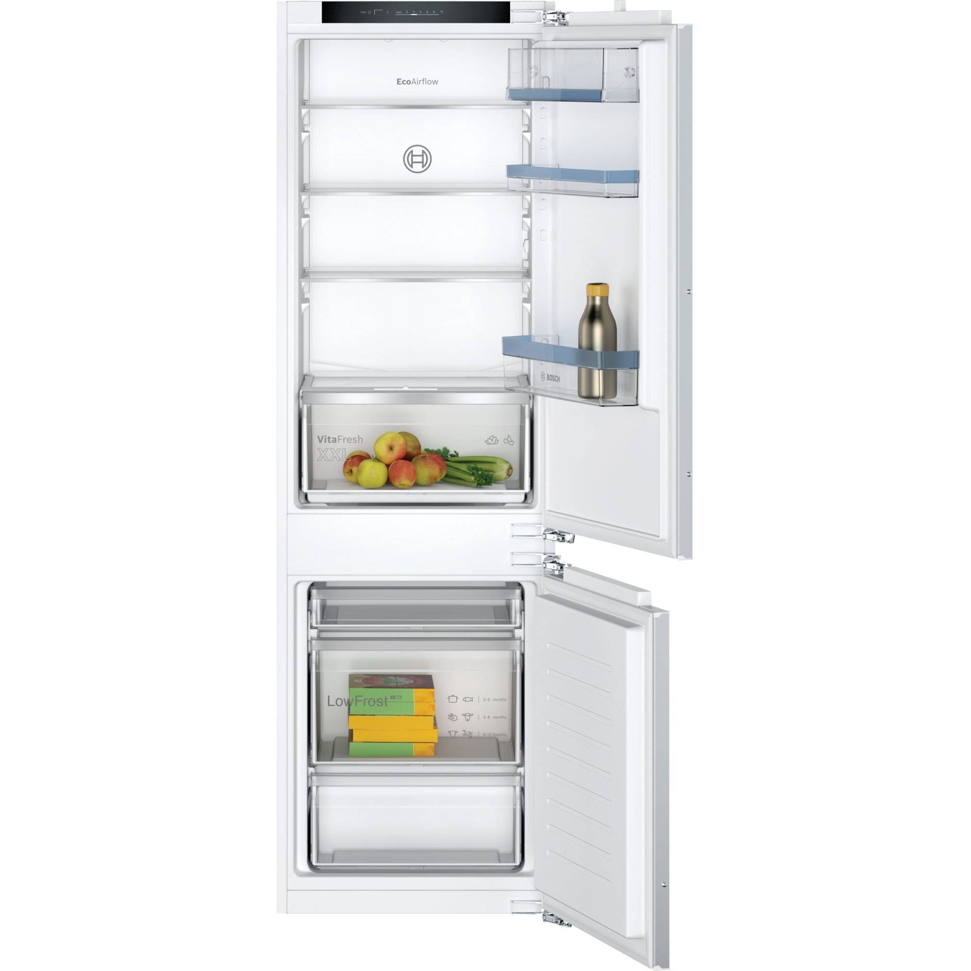 FreshSense - FreshSense: condiții perfecte pentru depozitare. Datorită condițiilor optime de depozitare, alimentele tale își păstrează consistența ideală, de exemplu, înghețata nu este nici prea moale nici prea tare. O temperatură constantă în interiorul frigiderului și al congelatorului este un factor decisiv pentru mai multă prospețime și savoare. Senzorii FreshSense monitorizează în mod constant temperatura ambiantă din frigider și congelator. Rezultatul este o temperatură constantă în interiorul frigiderului și congelatorului, independent de temperatura exterioară.