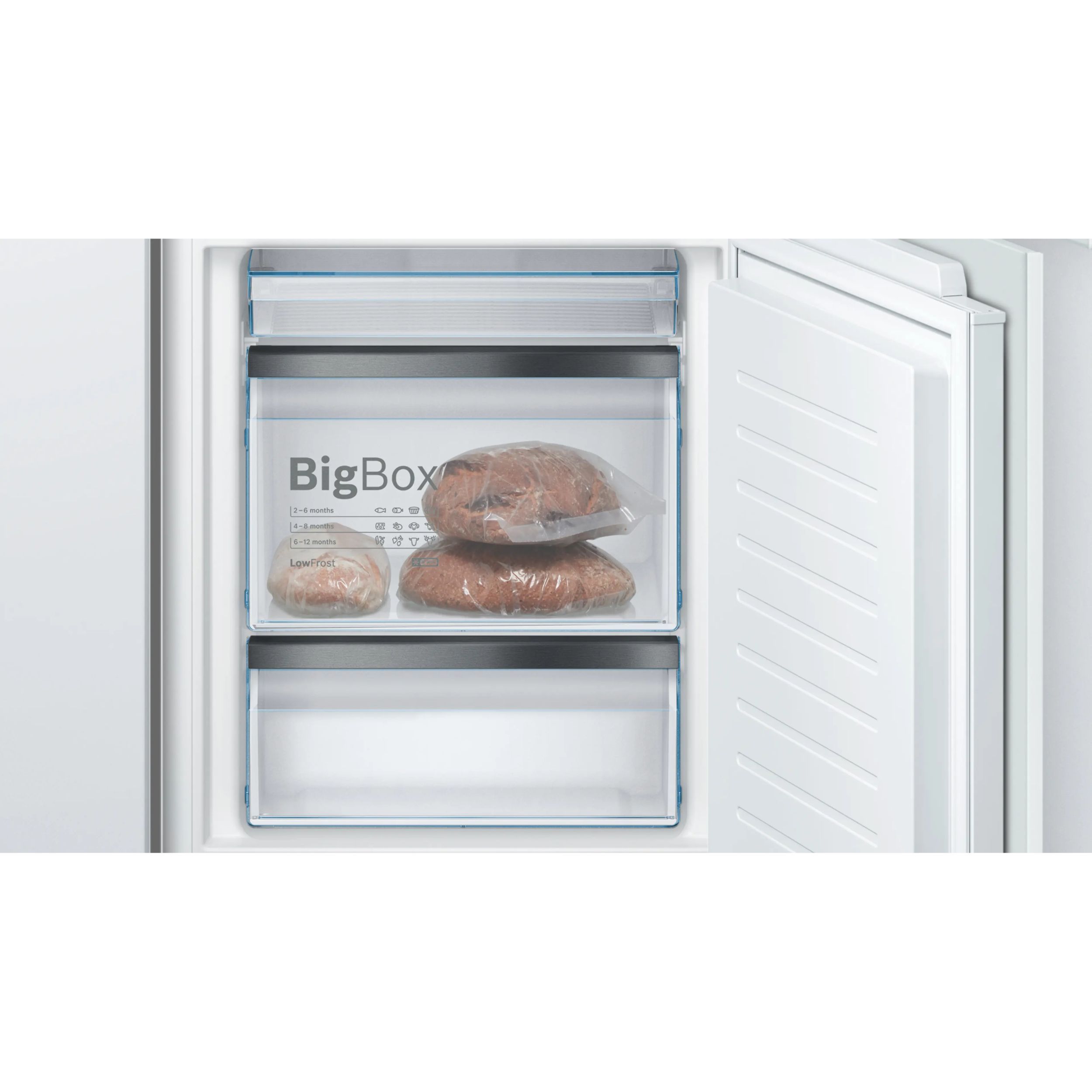 BigBox este un sertar pentru alimente congelate, conceput pentru depozitarea practică a recipientelor suprapuse sau a articolelor mai mari, precum torturi sau pizza. Datorită dimensiunii sale extra-înalte, oferă suficient spațiu pentru depozitarea produselor congelate voluminoase, fiind ideal pentru evenimente speciale, cum ar fi aniversarea unui copil sau congelarea unui tort de nuntă.