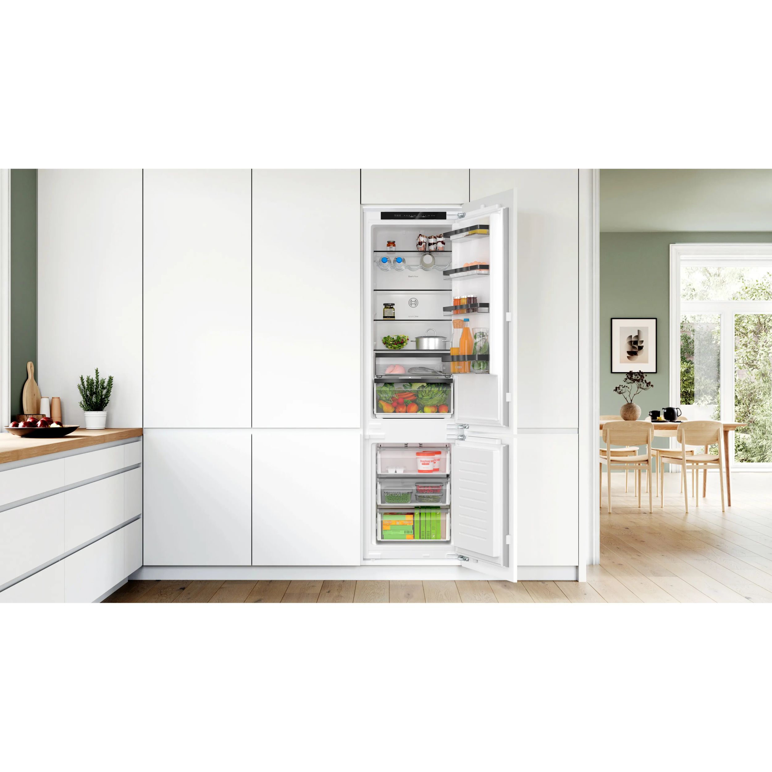 Combină frigorifică încorporabilă volum cu 12% mai mare, sistem VitaFresh XXL <0°C>, No Frost si sistem de avertizare in caz de eroare, pentru o depozitare optimă