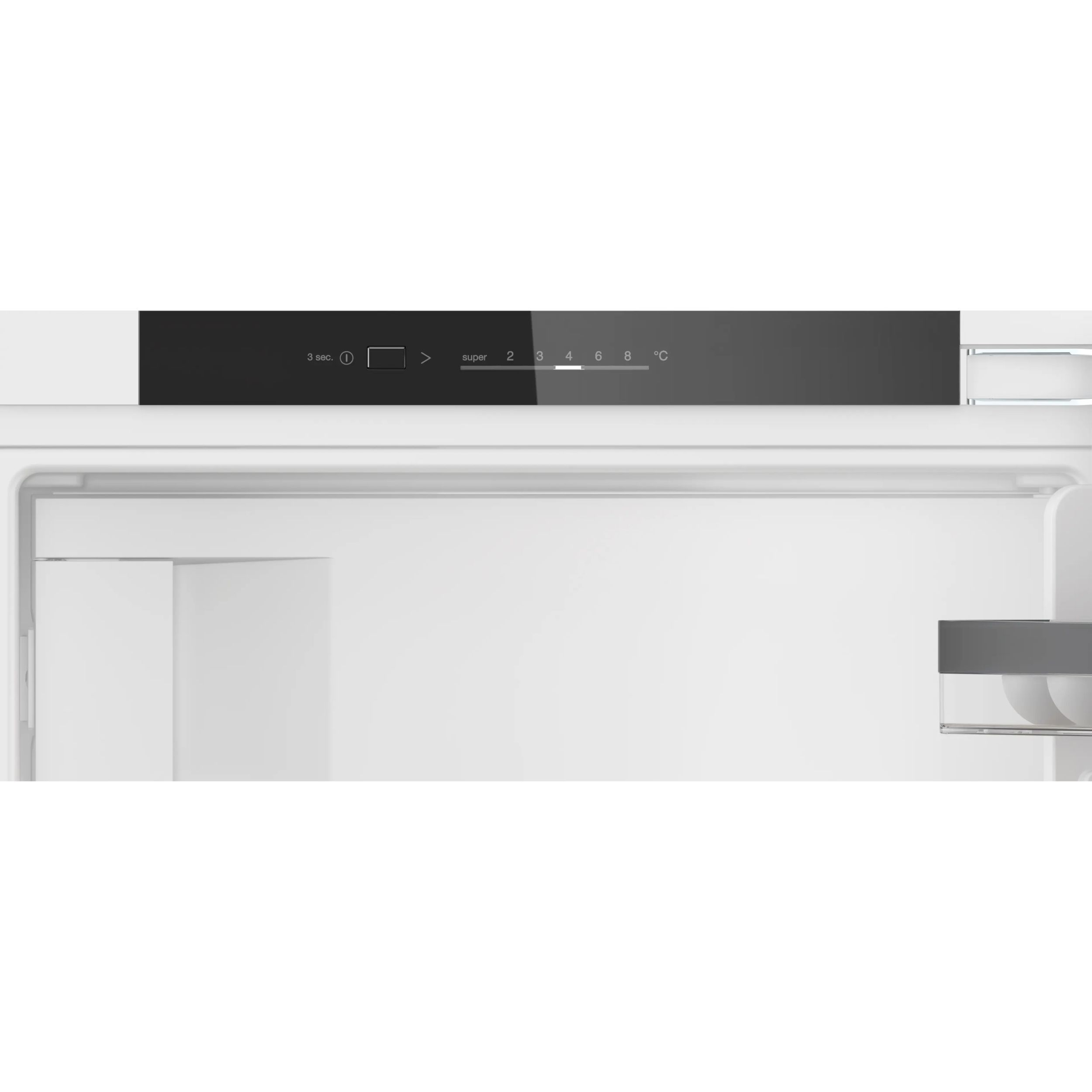 Cu funcția Super Cooling, poți reduce temporar temperatura din frigider înainte de a merge la cumpărături. Astfel, alimentele proaspăt achiziționate sunt păstrate la temperatura optimă. Este suficient să apeși un buton pentru a scădea temperatura cu până la 2°C. Iar pentru a evita consumul inutil de energie, funcția revine automat la setările normale după aproximativ 6-15 ore. În plus, dacă frigiderul tău este conectat, poți activa funcția Super Cooling direct din aplicația Home Connect.