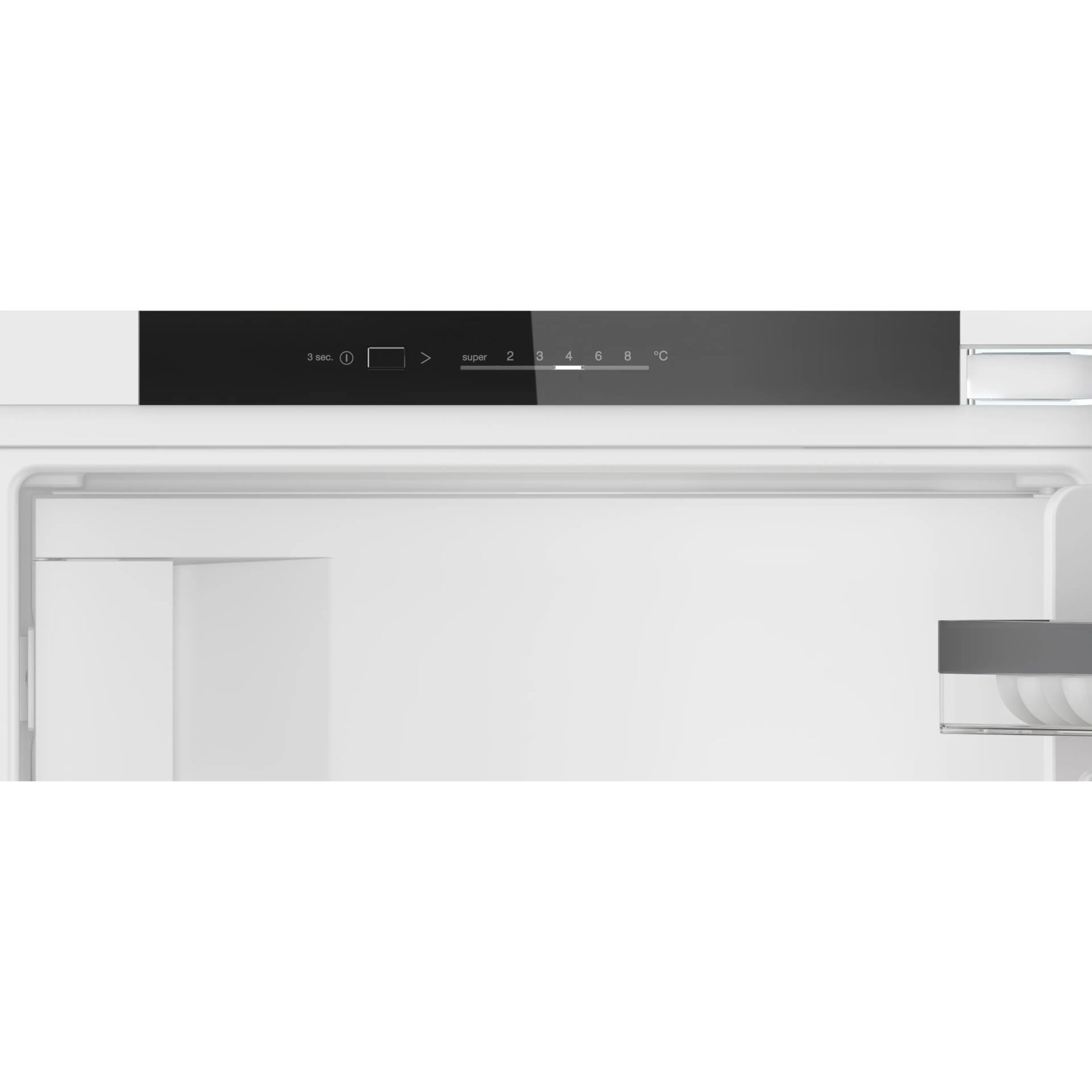 Cu funcția Super Cooling, poți reduce temporar temperatura din frigider înainte de a merge la cumpărături. Astfel, alimentele proaspăt achiziționate sunt păstrate la temperatura optimă. Este suficient să apeși un buton pentru a scădea temperatura cu până la 2°C. Iar pentru a evita consumul inutil de energie, funcția revine automat la setările normale după aproximativ 6-15 ore. În plus, dacă frigiderul tău este conectat, poți activa funcția Super Cooling direct din aplicația Home Connect.