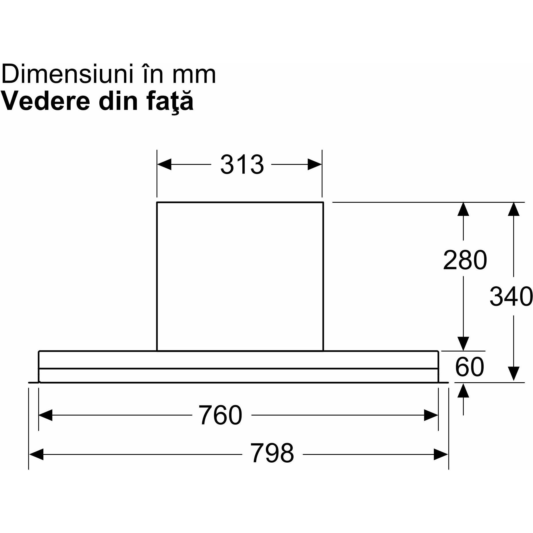 - Dimensiunile aparatului (Î x L x A): 340 x 798 x 298 mm