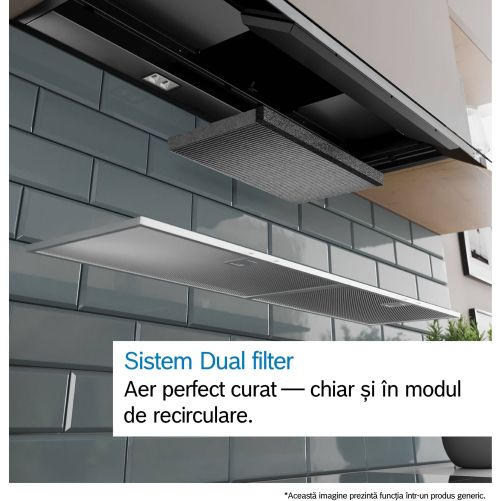 - Indicator de saturare, funcții setare și resetare a filtrului de grăsime și a filtrului împotriva mirosurilor, disponibile prin intermediul aplicației Home Connect.