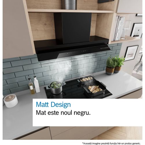 - Smart Hood Automatic: Hota adaptează automat viteza ventilatorului datorită plitei, care transmite continuu date despre gătire (funcționează cu toate plitele cu inducție actuale din Seria 6; pentru alte plite Home Connect, hota poate fi controlată direct de pe plită, cu condiția să existe un cont Home Connect conectat).