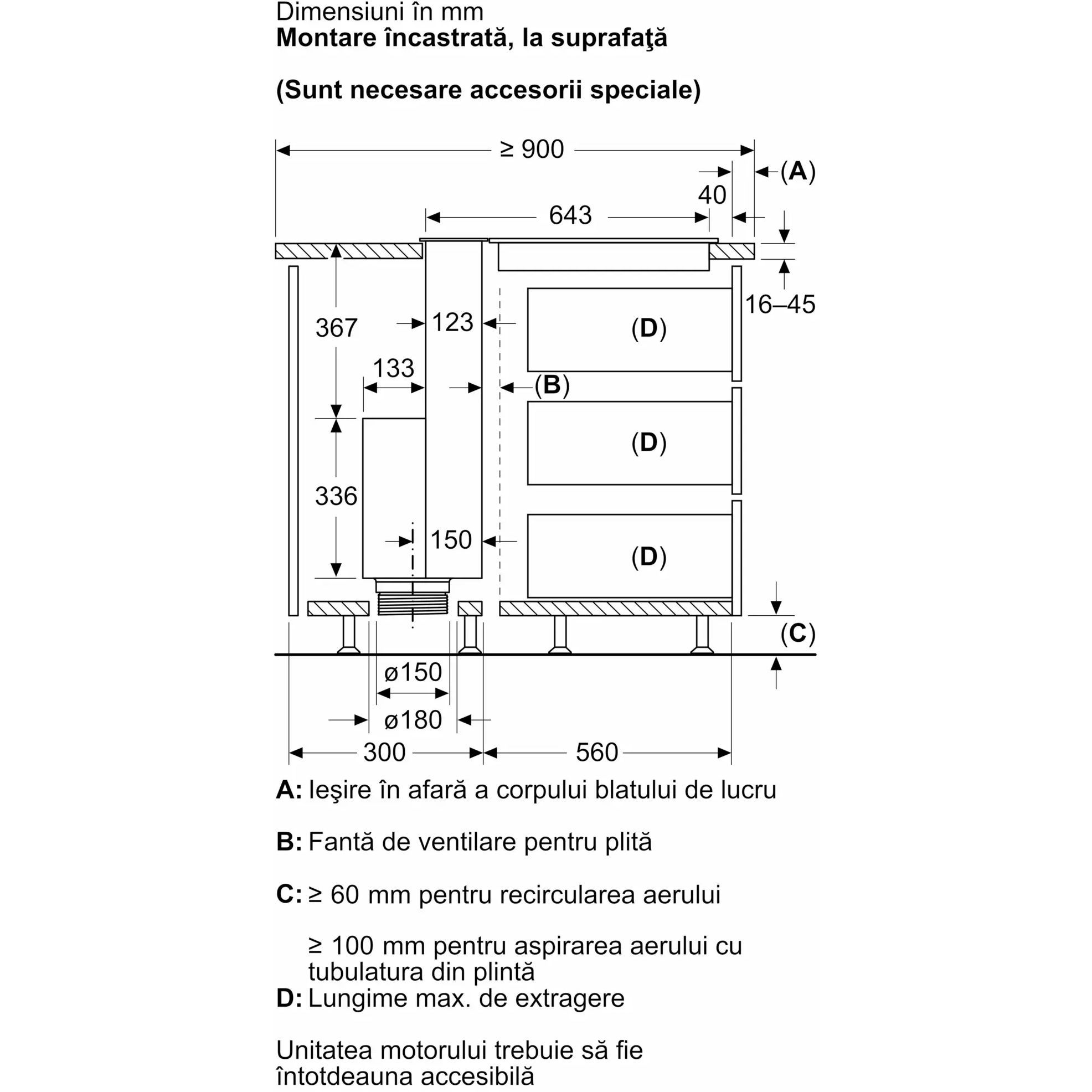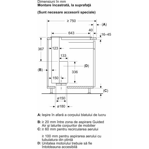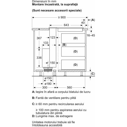 Hotă încorporabilă în blat BOSCH Serie 8 DDW88MM66, accent line, 80cm, Sticlă transparentă, Negru