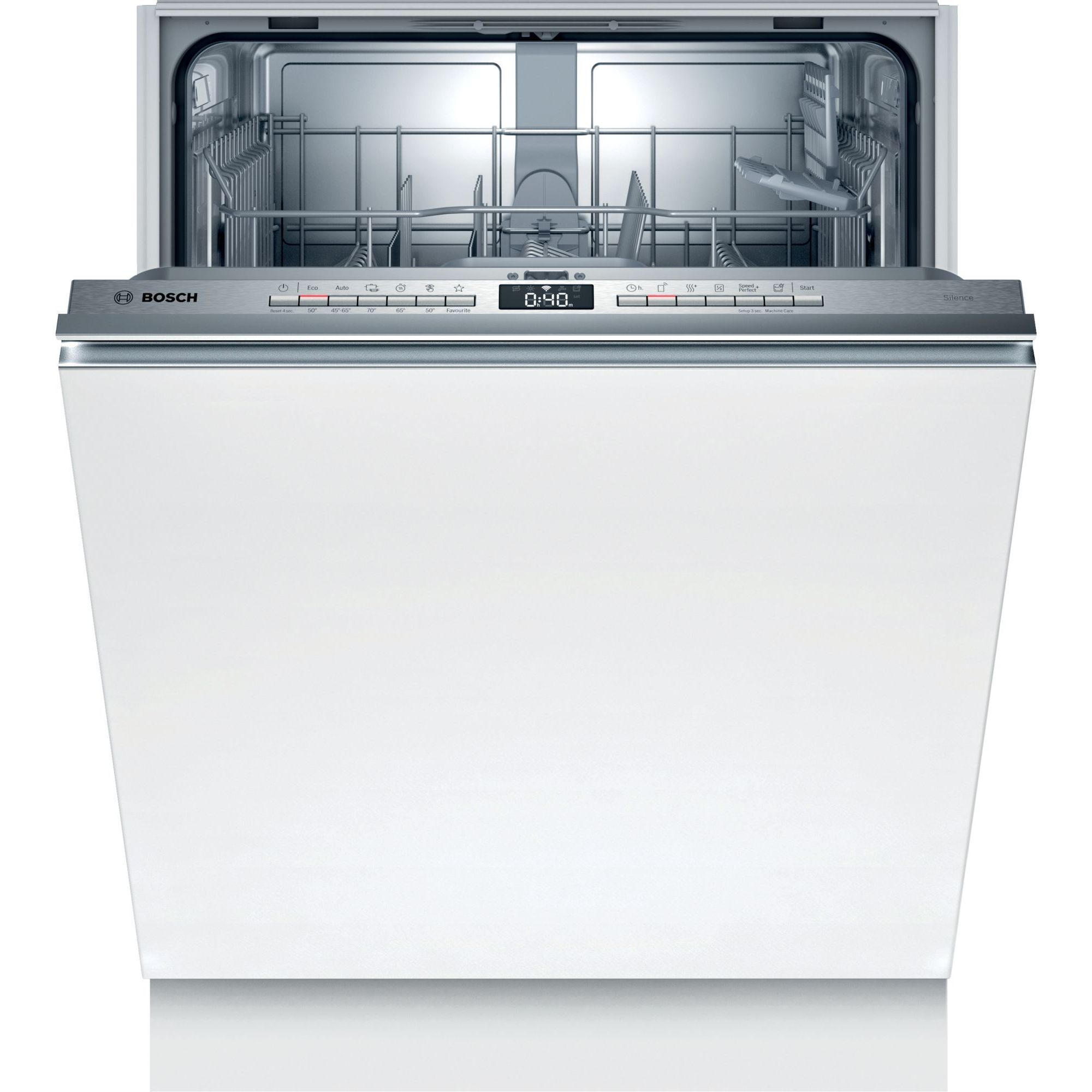 Programul Silence este cea mai silențioasă modalitate de utilizare a mașinii de spălat vase. Prin activarea sa, se reduce automat zgomotul mașinii de spălat vase la niveluri minime posibile. Aceasta se realizează prin programul Eco 50°C adaptat special cu o presiune de pulverizare redusă și faze de spălare extinse.