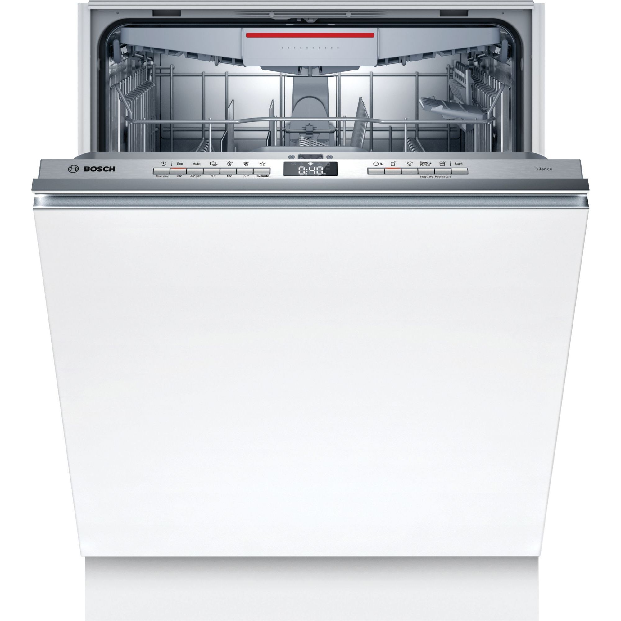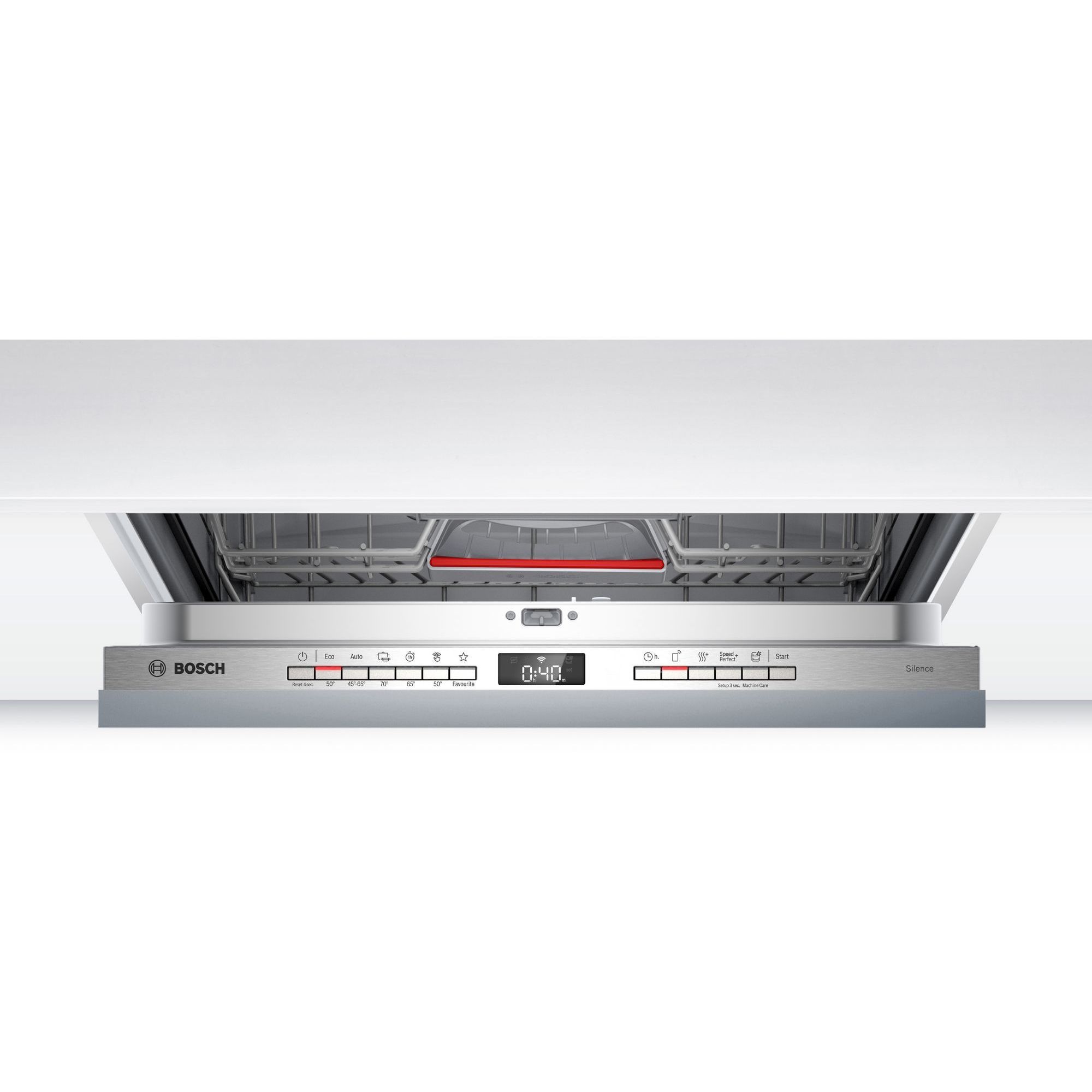 Programul Silence este cea mai silențioasă modalitate de utilizare a mașinii de spălat vase. Prin activarea sa, se reduce automat zgomotul mașinii de spălat vase la niveluri minime posibile. Aceasta se realizează prin programul Eco 50°C adaptat special cu o presiune de pulverizare redusă și faze de spălare extinse.