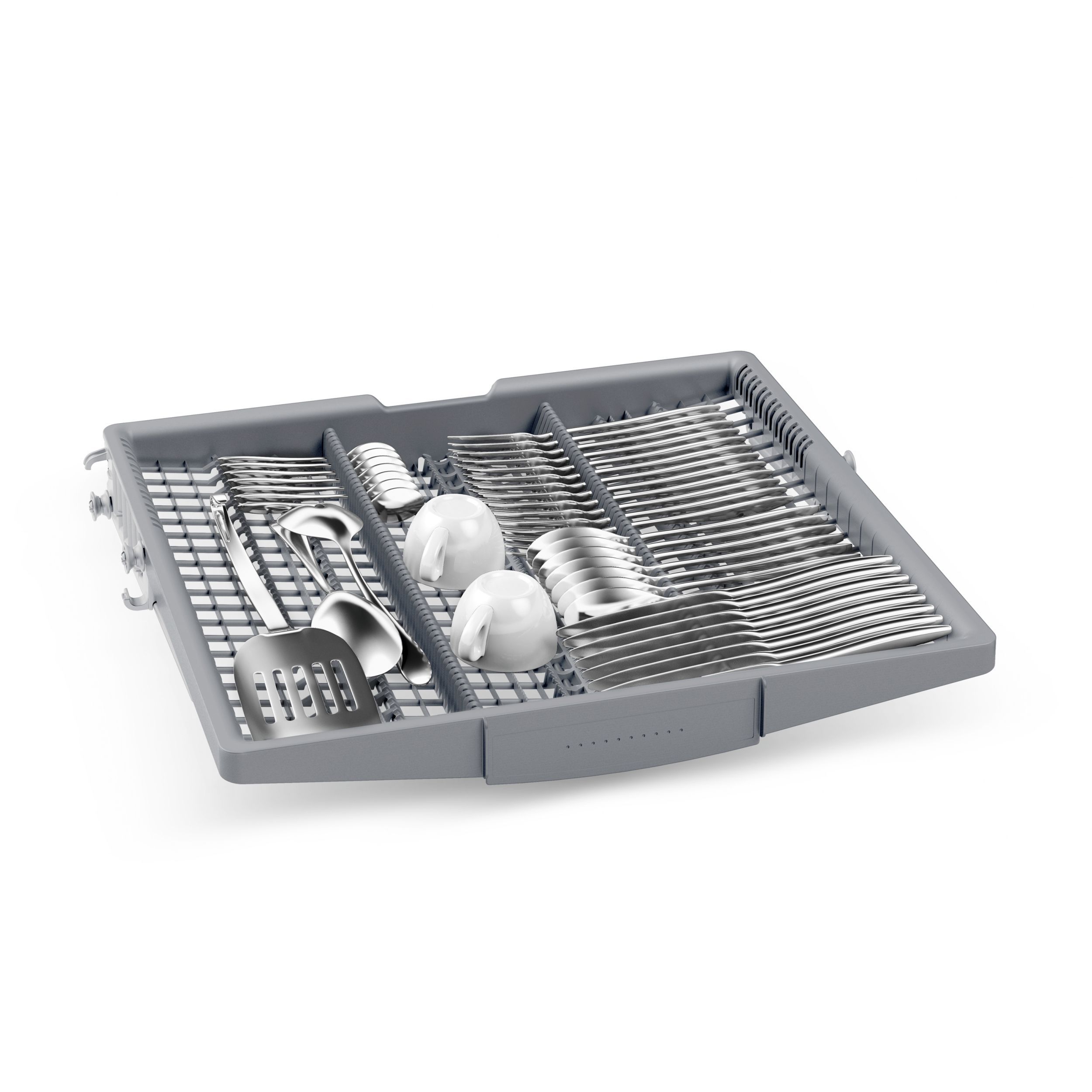 Datorită sertarului de tacâmuri VarioDrawer, cel de-al treilea nivel de încărcare, mașinile de spălat vase Bosch sunt și mai confortabile. Acesta este locul ideal pentru tacâmuri și ustensile mici de bucătărie, de exemplu polonice și teluri. Acesta îți oferă mai mare flexibilitate la încărcarea mașinii tale de spălat vase și creează mai mult spațiu în interiorul compartimentului de spălare. Coșul pentru tacâmuri din coșul inferior poate fi înlocuit cu VarioDrawer pentru crea o capacitate de până la 14 seturi de veselă standard în cazul mașinilor de spălat vase de 60 cm, și de până la 10 seturi de veselă standard pentru mașinile de 45 cm.