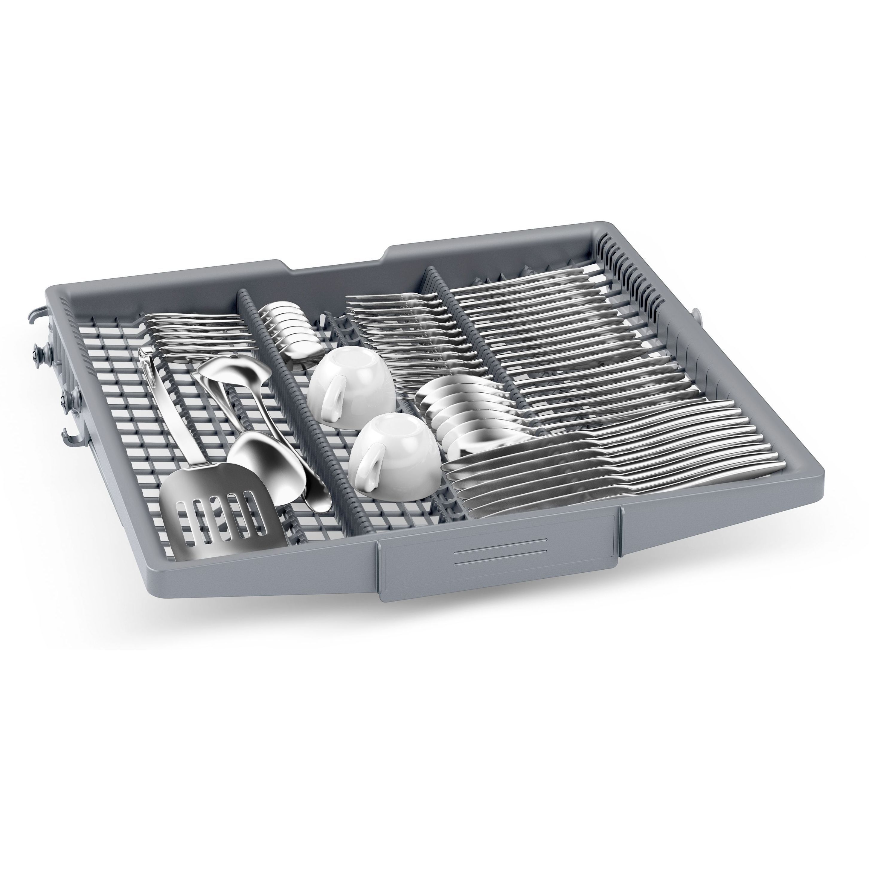 Datorită sertarului de tacâmuri VarioDrawer, cel de-al treilea nivel de încărcare, mașinile de spălat vase Bosch sunt și mai confortabile. Acesta este locul ideal pentru tacâmuri și ustensile mici de bucătărie, de exemplu polonice și teluri. Acesta îți oferă mai mare flexibilitate la încărcarea mașinii tale de spălat vase și creează mai mult spațiu în interiorul compartimentului de spălare. Coșul pentru tacâmuri din coșul inferior poate fi înlocuit cu VarioDrawer pentru crea o capacitate de până la 14 seturi de veselă standard în cazul mașinilor de spălat vase de 60 cm, și de până la 10 seturi de veselă standard pentru mașinile de 45 cm.