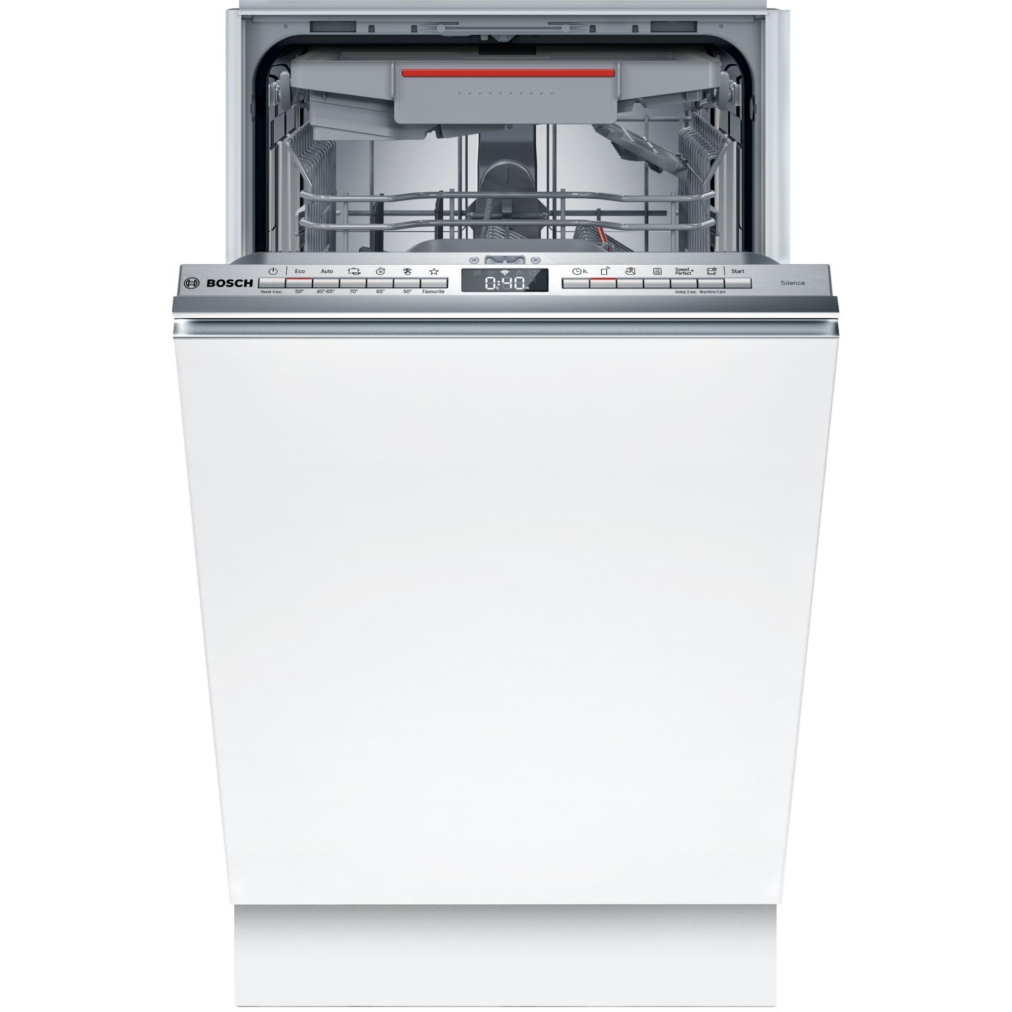 Programul Silence este cea mai silențioasă modalitate de utilizare a mașinii de spălat vase. Prin activarea sa, se reduce automat zgomotul mașinii de spălat vase la niveluri minime posibile. Aceasta se realizează prin programul Eco 50°C adaptat special cu o presiune de pulverizare redusă și faze de spălare extinse.