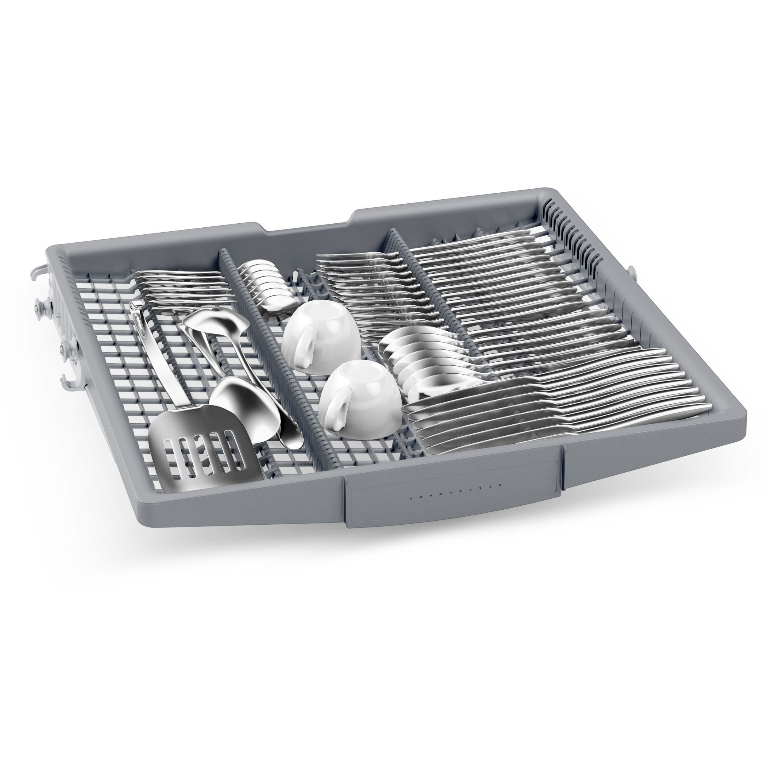 Datorită sertarului de tacâmuri VarioDrawer, cel de-al treilea nivel de încărcare, mașinile de spălat vase Bosch sunt și mai confortabile. Acesta este locul ideal pentru tacâmuri și ustensile mici de bucătărie, de exemplu polonice și teluri. Acesta îți oferă mai mare flexibilitate la încărcarea mașinii tale de spălat vase și creează mai mult spațiu în interiorul compartimentului de spălare. Coșul pentru tacâmuri din coșul inferior poate fi înlocuit cu VarioDrawer pentru crea o capacitate de până la 14 seturi de veselă standard în cazul mașinilor de spălat vase de 60 cm, și de până la 10 seturi de veselă standard pentru mașinile de 45cm.