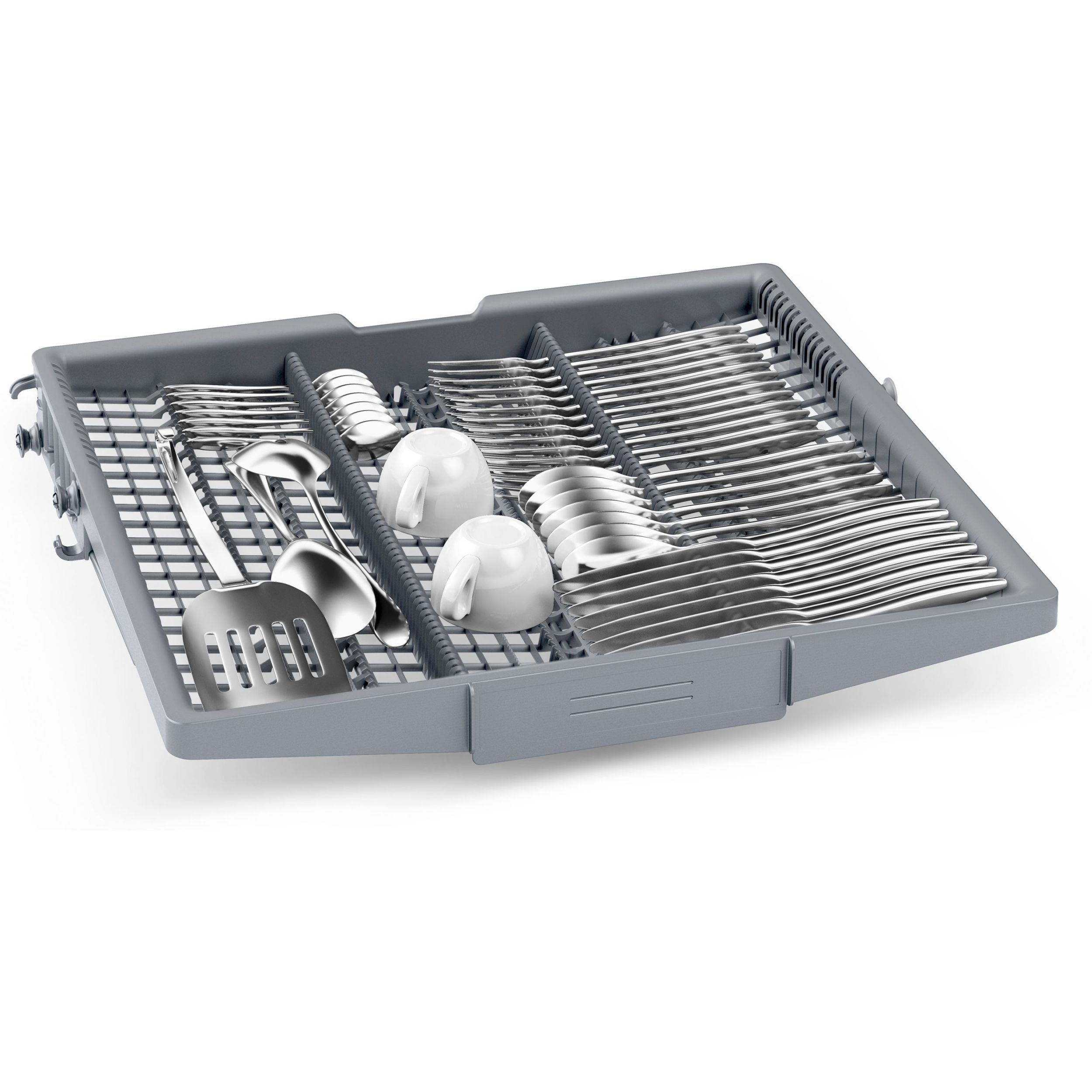 Datorită sertarului de tacâmuri VarioDrawer, cel de-al treilea nivel de încărcare, mașinile de spălat vase Bosch sunt și mai confortabile. Acesta este locul ideal pentru tacâmuri și ustensile mici de bucătărie, de exemplu polonice și teluri. Acesta îți oferă mai mare flexibilitate la încărcarea mașinii tale de spălat vase și creează mai mult spațiu în interiorul compartimentului de spălare. Coșul pentru tacâmuri din coșul inferior poate fi înlocuit cu VarioDrawer pentru crea o capacitate de până la 14 seturi de veselă standard în cazul mașinilor de spălat vase de 60 cm, și de până la 10 seturi de veselă standard pentru mașinile de 45 cm.
