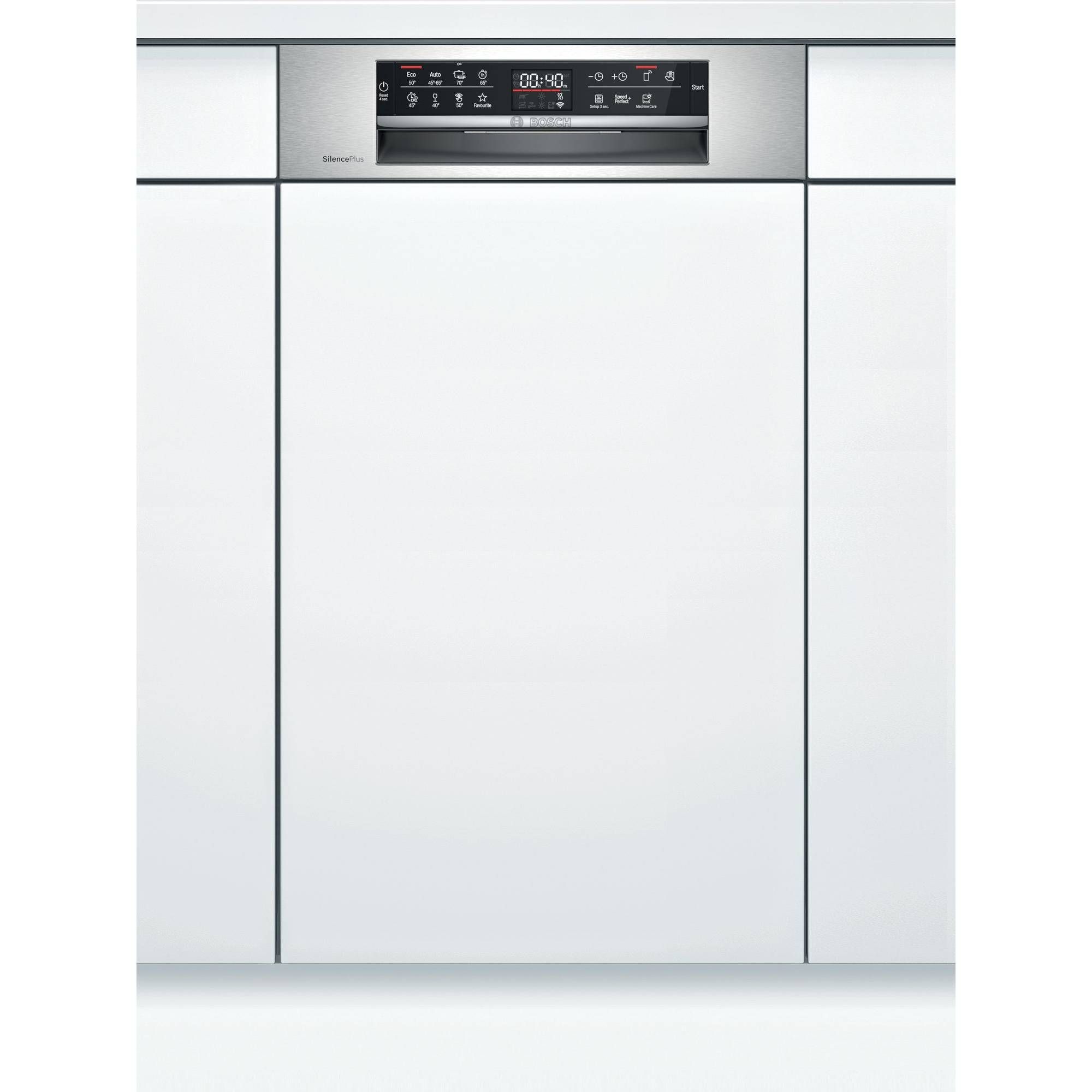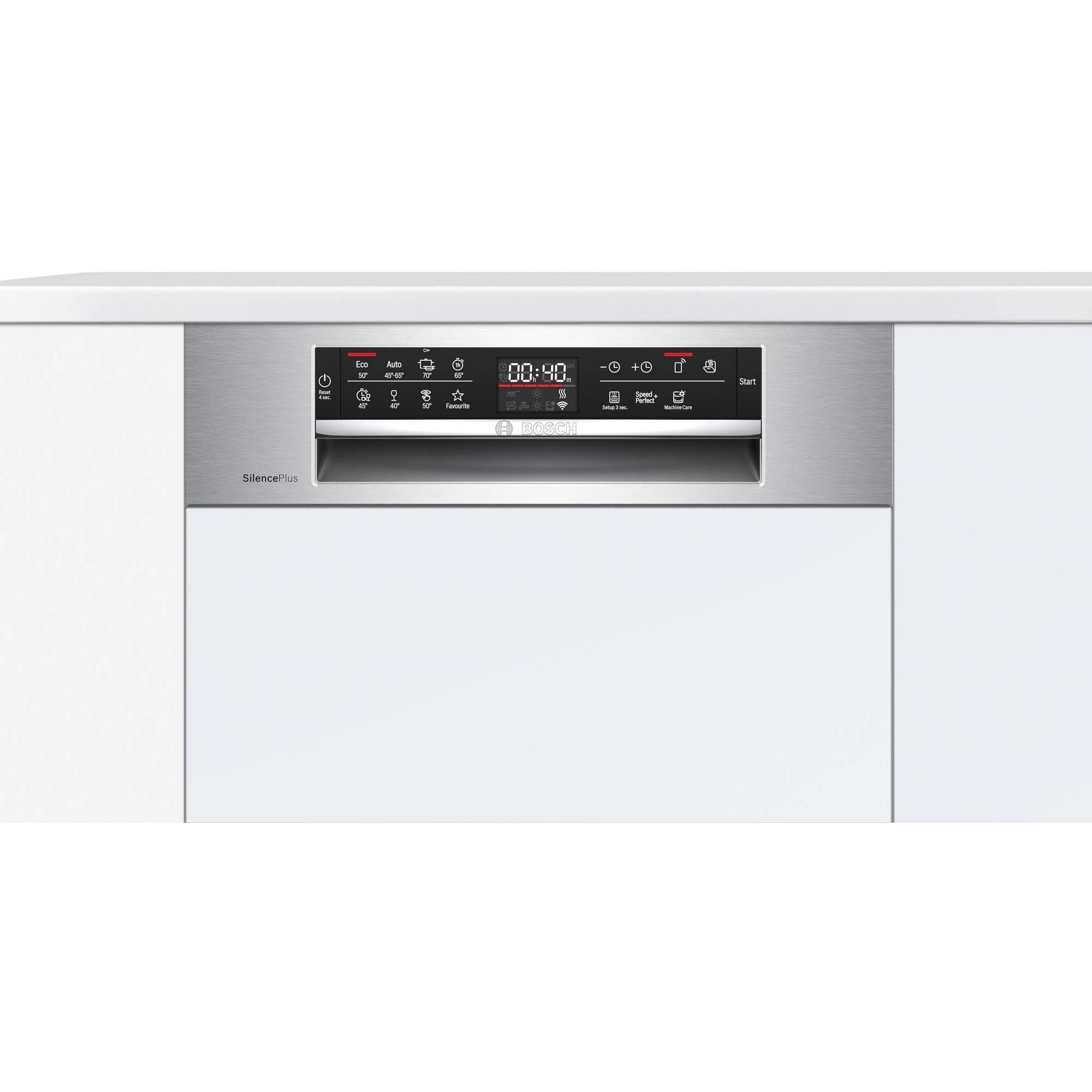 - 4 opțiuni speciale: Home Connect, Efficient Dry, IntensiveZone: soluția ideală pentru încărcături mixte- program de funcționare ușor extins(se poate folosi în combinație cu aproape orice program exceptând Quick 45°C și 1h) , SpeedPerfect+: pentru curățarea rapidă a vaselor- reducerea timpului de funcționare până la max. 65 min. ( se poate folosi în combinație cu aproape orice program cu excepția Quick 45°C, Silence și 1h)