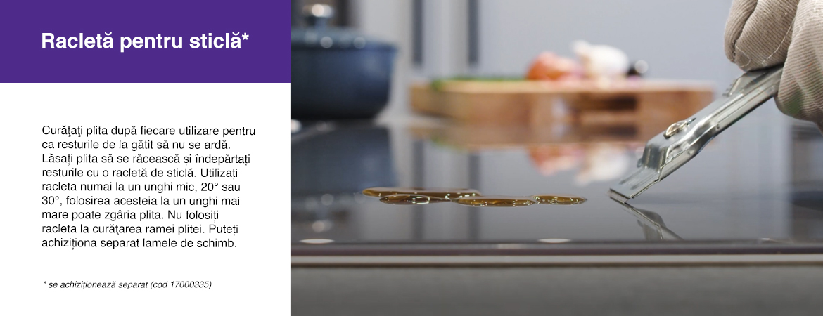 Funcţii de protecţie plită: Blocare taste: poți curăța lichidul scurs pe plită, fără a modifica din greșeală setările inițiale (blochează toate tastele pentru 30 de secunde).
