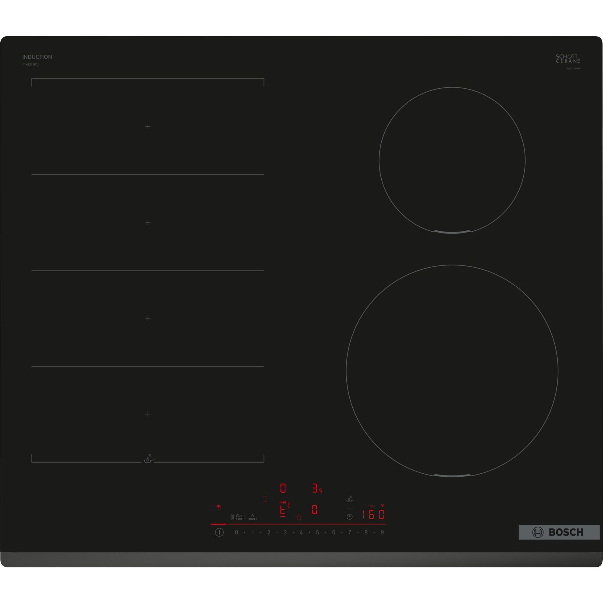 Zonele de gătit pot fi unite sau separate automat, în funcție de forma și dimensiunea vaselor utilizate.