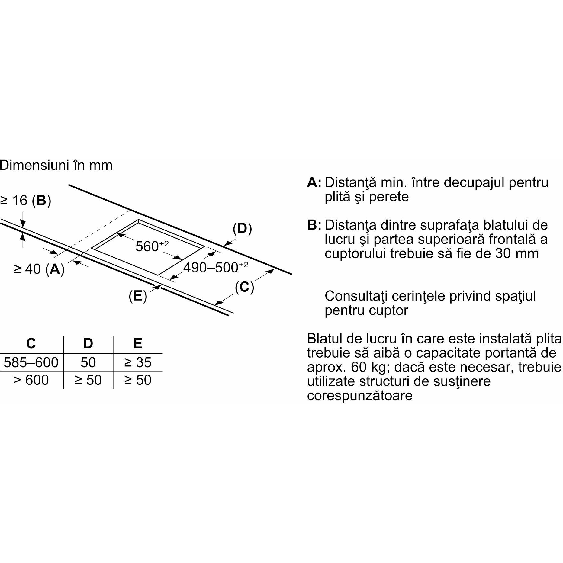 Dimensiuni nișă (ȊxLxA): 51 x 560 x (490 - 500)mm