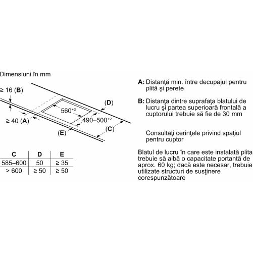 Dimensiuni nișă (ȊxLxA): 51 x 560 x (490 - 500)mm