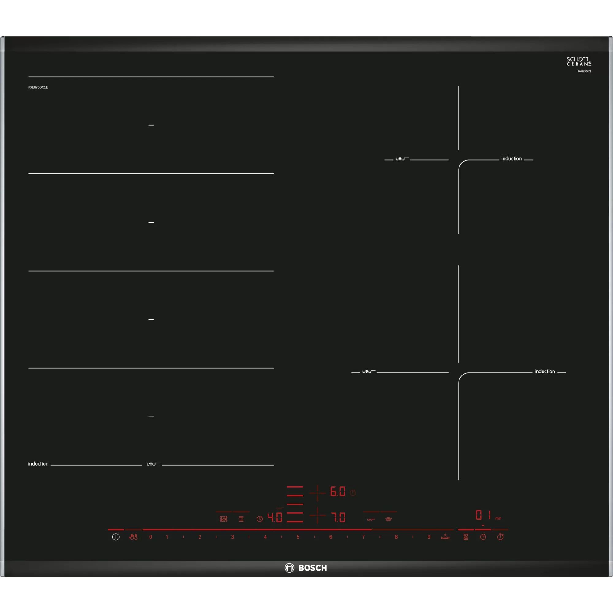 Zonele de gătit pot fi unite sau separate automat, în funcție de forma și dimensiunea vaselor utilizate.