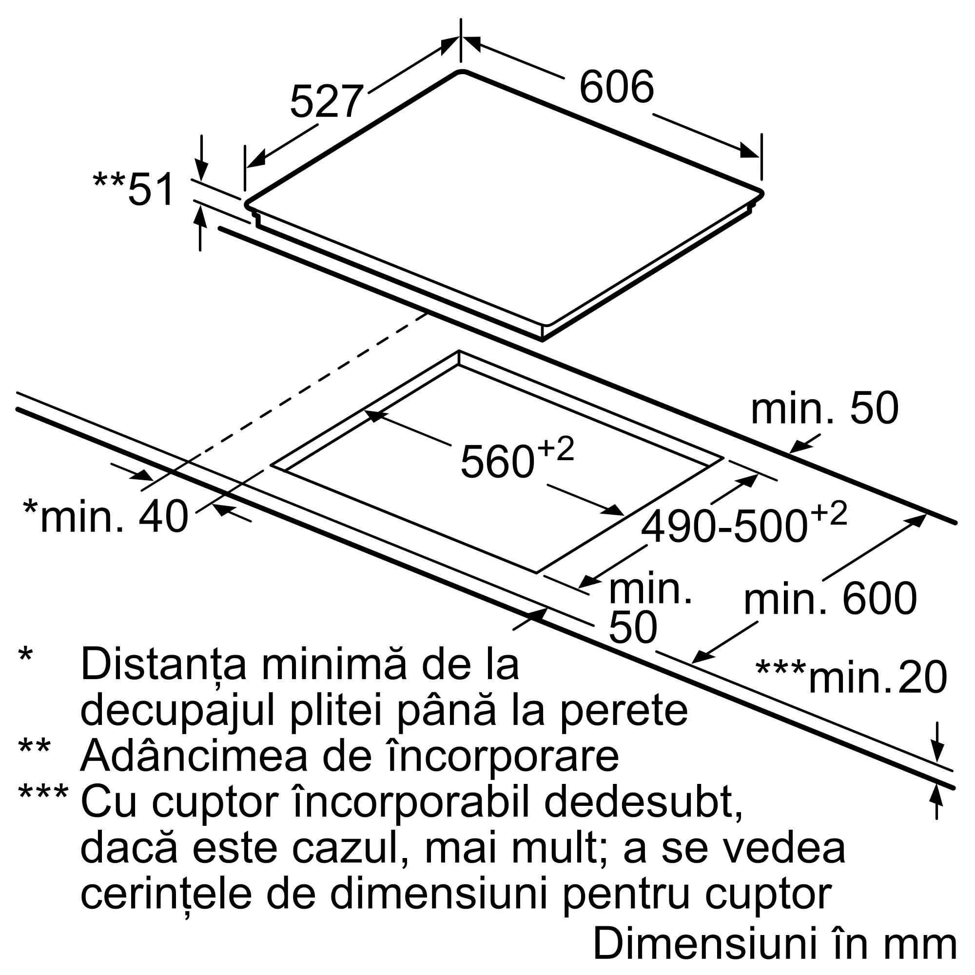 Dimensiuni nișă (ȊxLxA): 51 x 560 x (490 - 500)mm