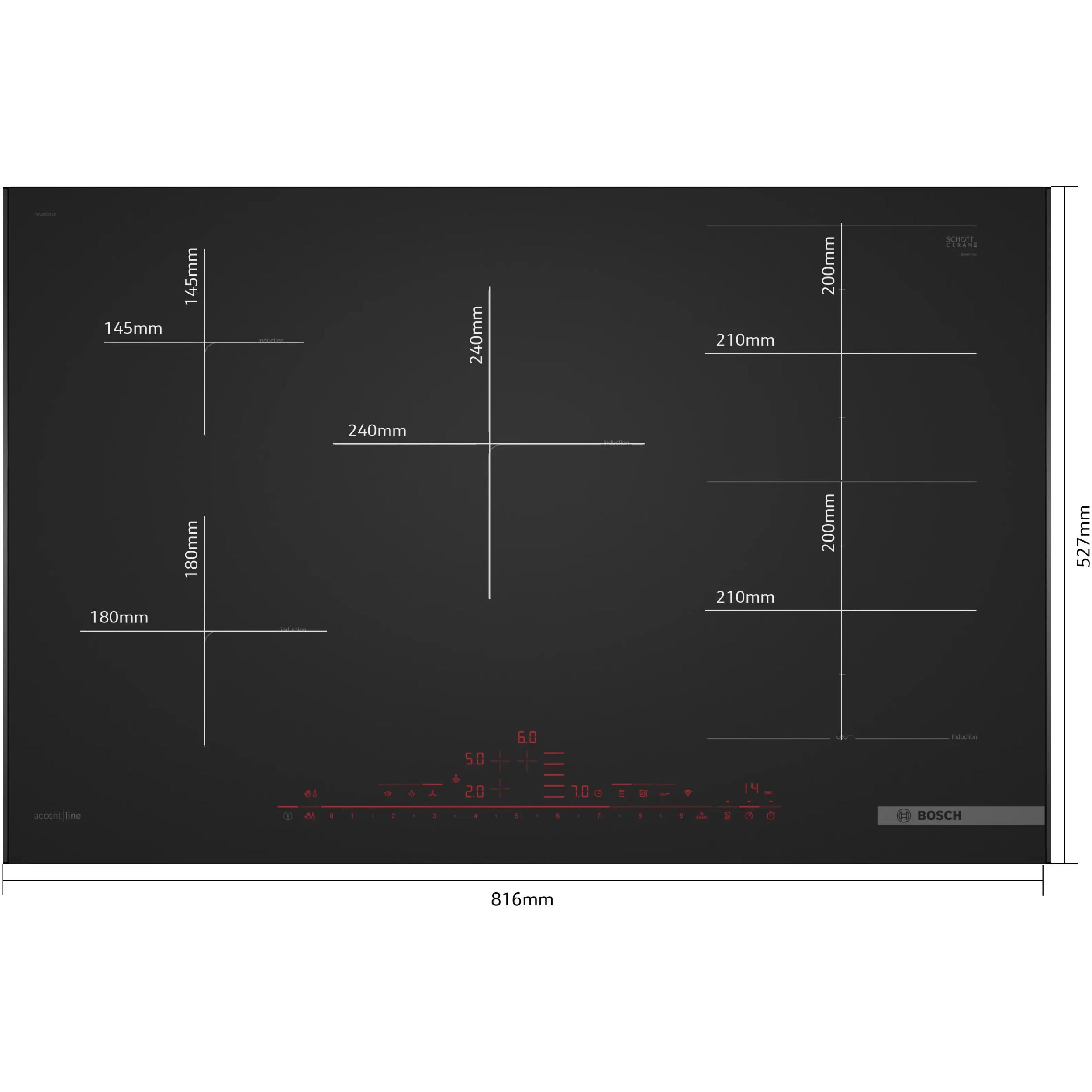 - Zone de gătit delimitate în design exclusivist Bosch AccentLine, corner printed brand logo : design minimalist cu zone de gătit delimitate printr-o culoare nchisă.