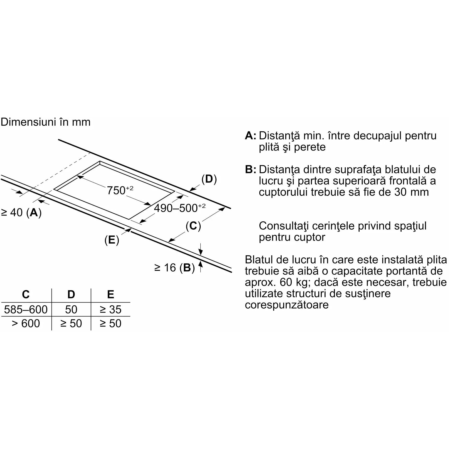 - Dimensiuni nișă (xLxA): 51 x 750 x (490 - 500) mm