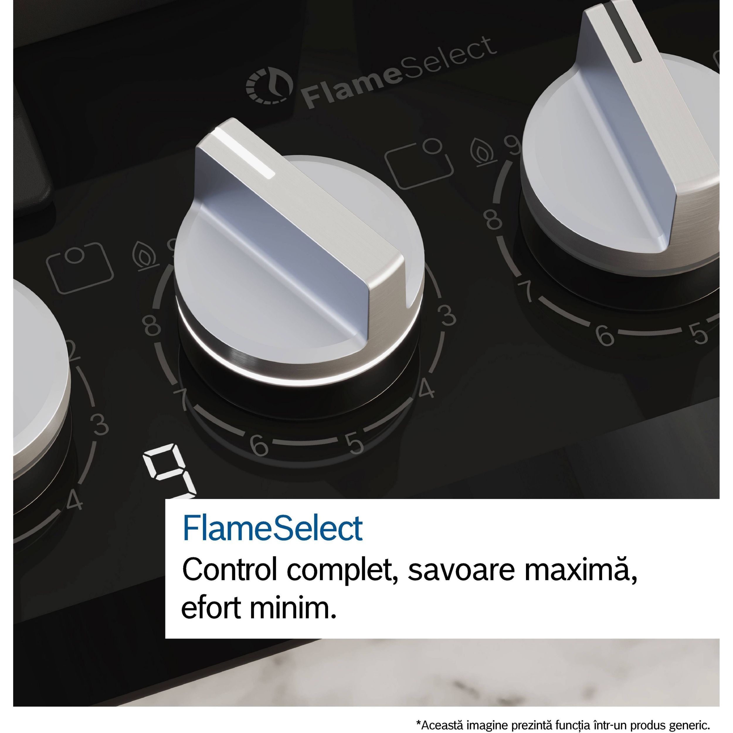 Obținerea intensității perfecte a flăcării poate fi o provocare. De aceea, plitele FlameSelect îți oferă nouă trepte de intensitate a flăcării precis definite. Reglează căldura cu ușurință și precizie, pentru un sotat uniform sau o fierbere lentă, garantând rezultate perfecte de fiecare dată.