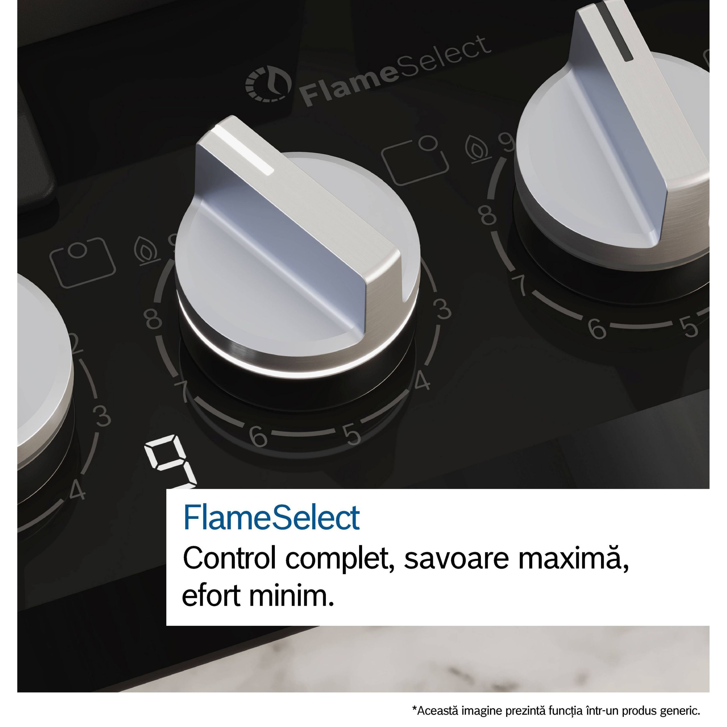 • FlameSelect: reglează flacăra gazului cu precizie, folosind nouă niveluri predefinite.