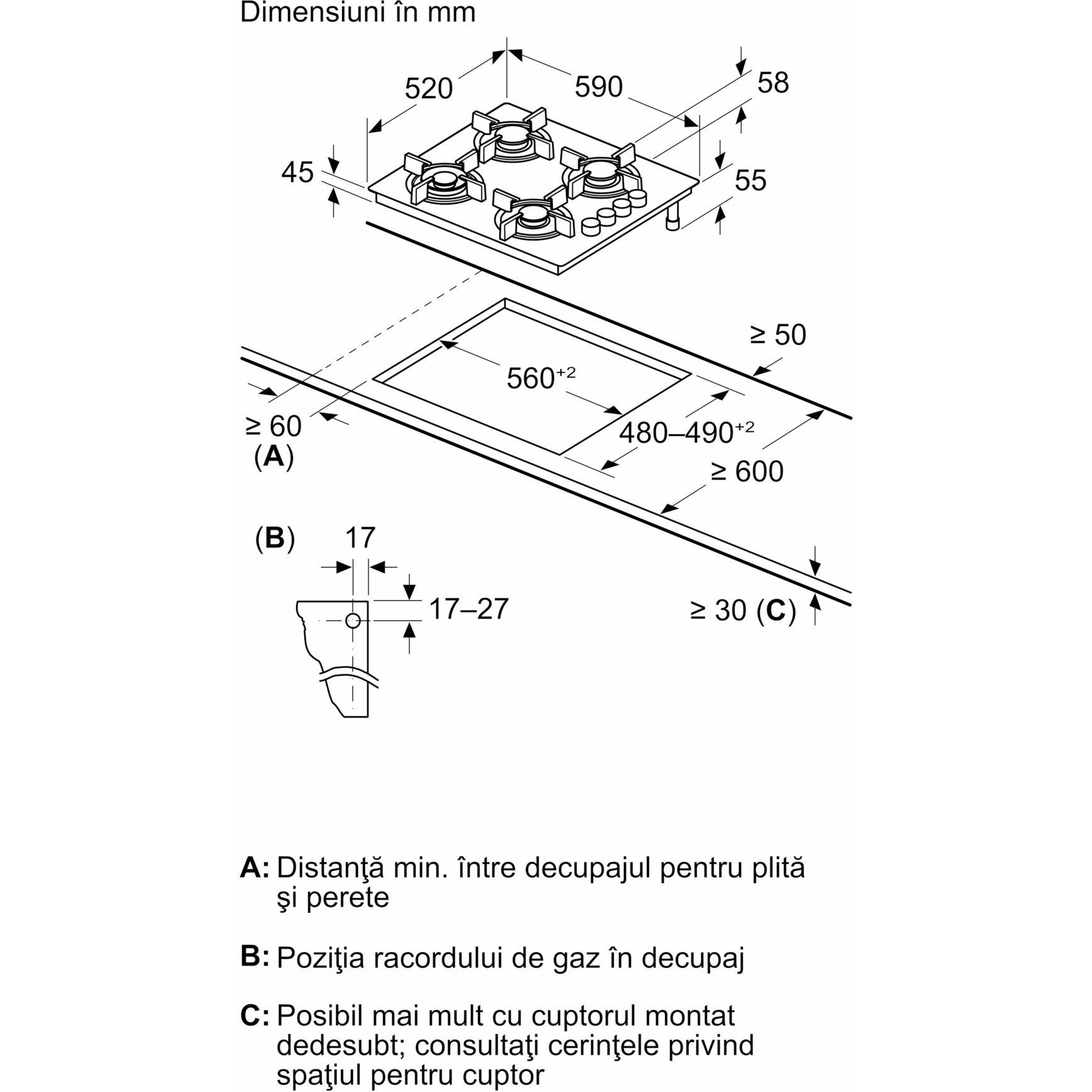 Duze pentru GPL(28-30/37 mbar) incluse. Pentru utilizarea altor tipuri de gaz, contactați unitățile de service abilitate pentru achiziția duzelor necesare. Pentru ȋnlocuirea duzelor, contactați unitățile de service abilitate.