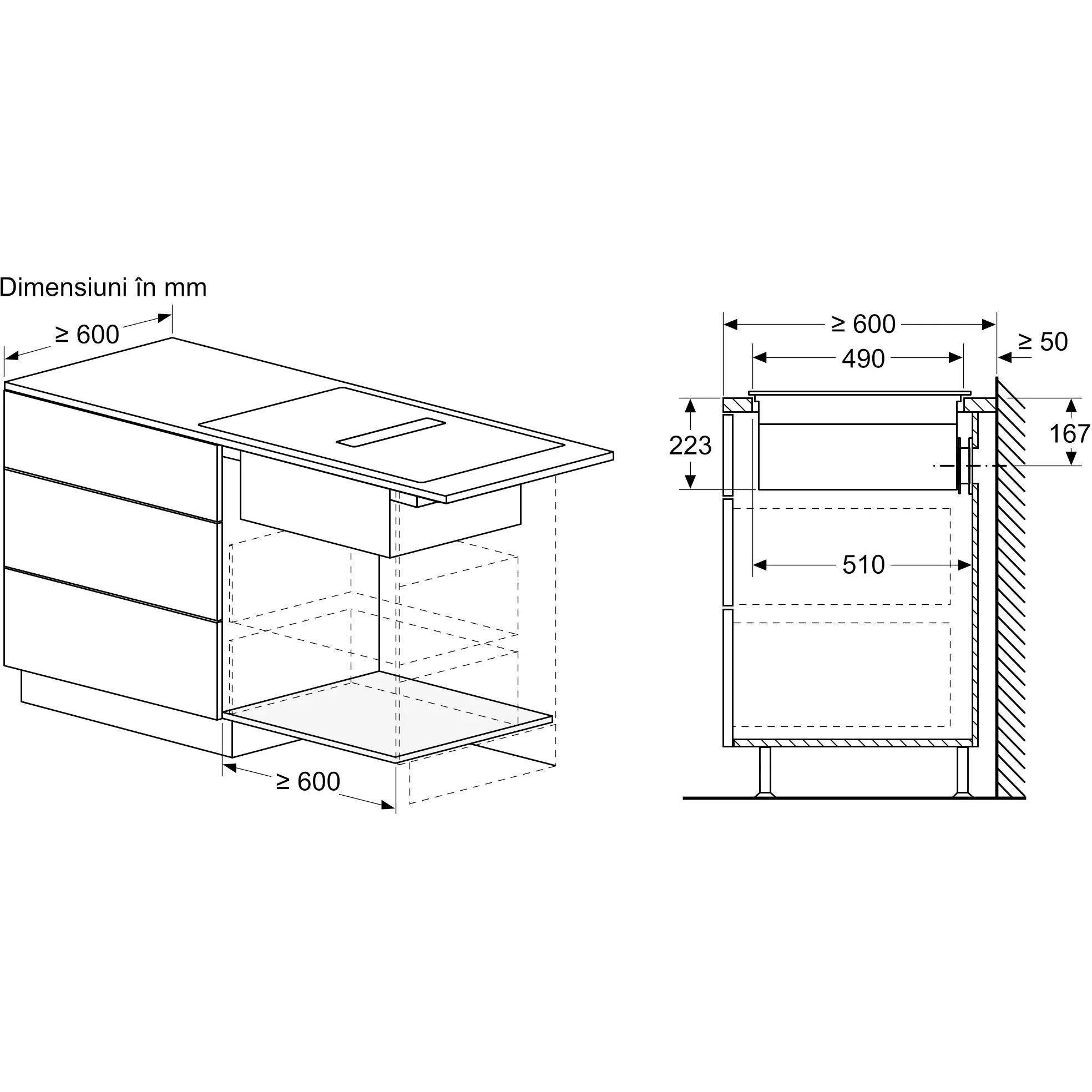 - Este posibilă instalarea în dulap de 60 cm