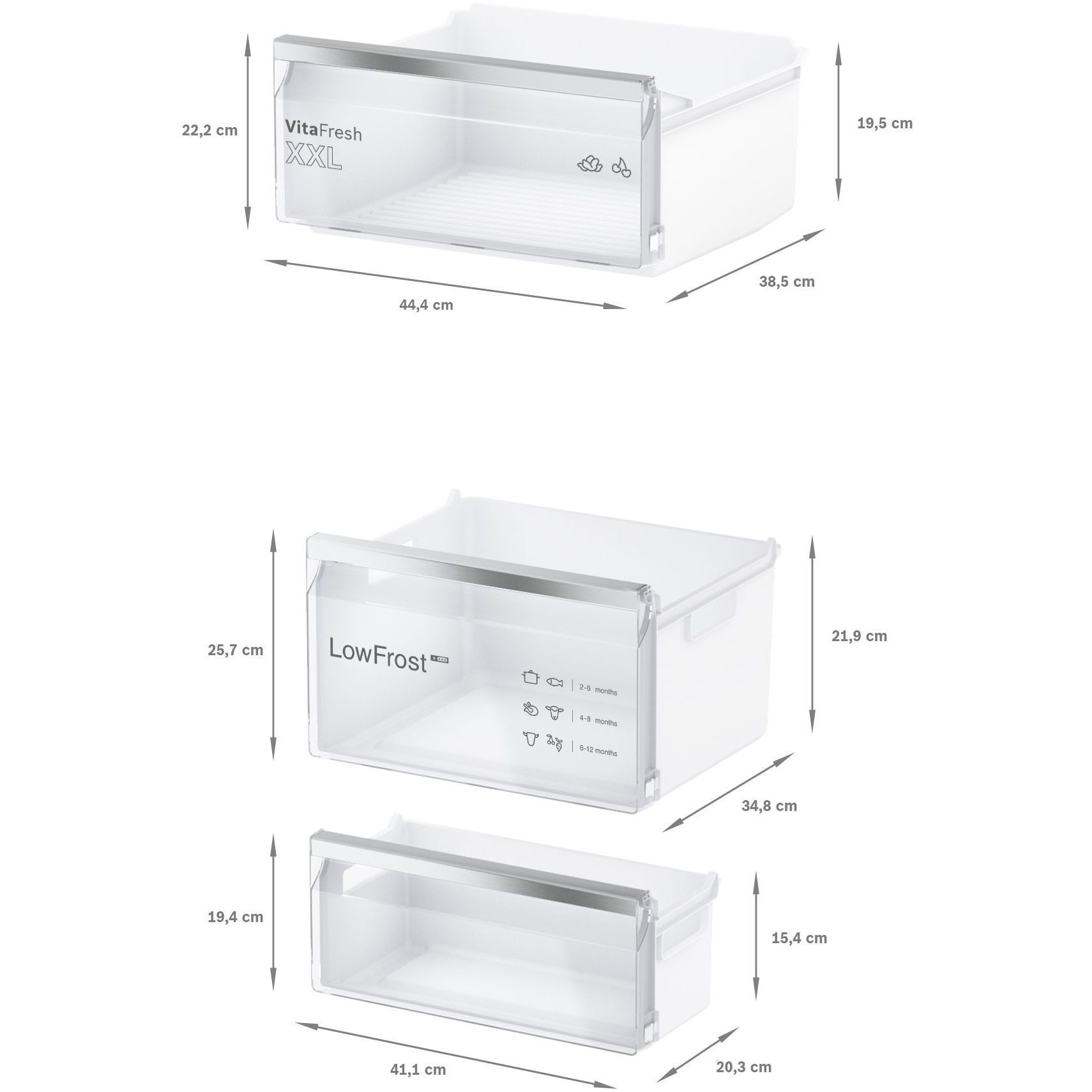 Sistemul VitaFresh XXL oferă un mediu de depozitare ideal pentru alimentele proaspete. Menține o temperatură scăzută pentru carne și pește, iar sertarul cu temperatură controlată menține fructele și legumele cu adevărat proaspete.