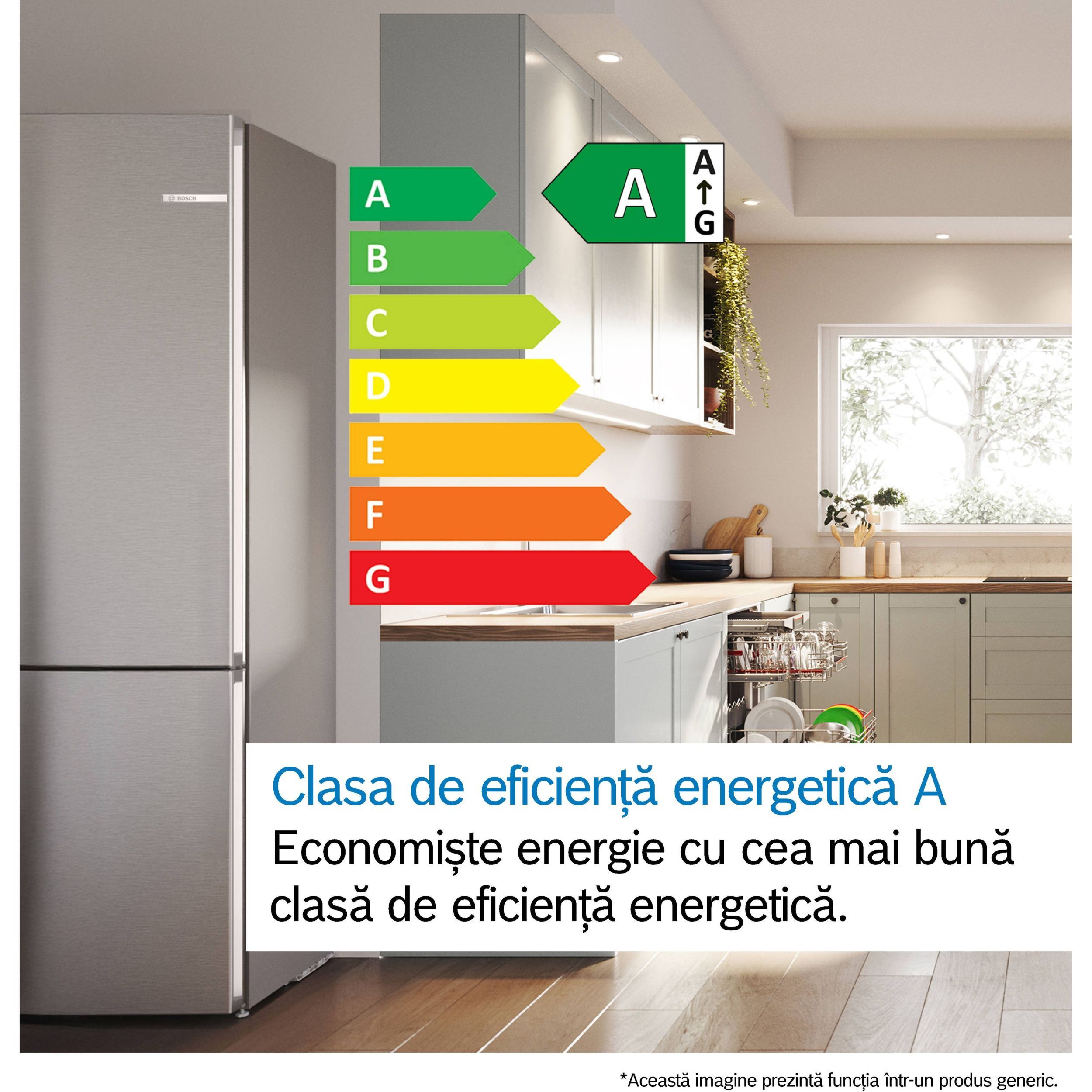 Alege electrocasnice care economisesc energie si salvezi resurse valoroase. Este important ca atunci când achiziționezi un aparat electrocasnic să iei în considerare valorile energetice scăzute. Eticheta energetică specifică clasa de eficiență, nivelul de zgomot, capacitatea și energia aparatului respectiv. Combinele frigorifice Bosch ating cea mai bună eficiență energetică și cel mai bun nivel de zgomot. Puteți fi sigur ca vei beneficia de rezultate de răcire eficiente și perfecte.