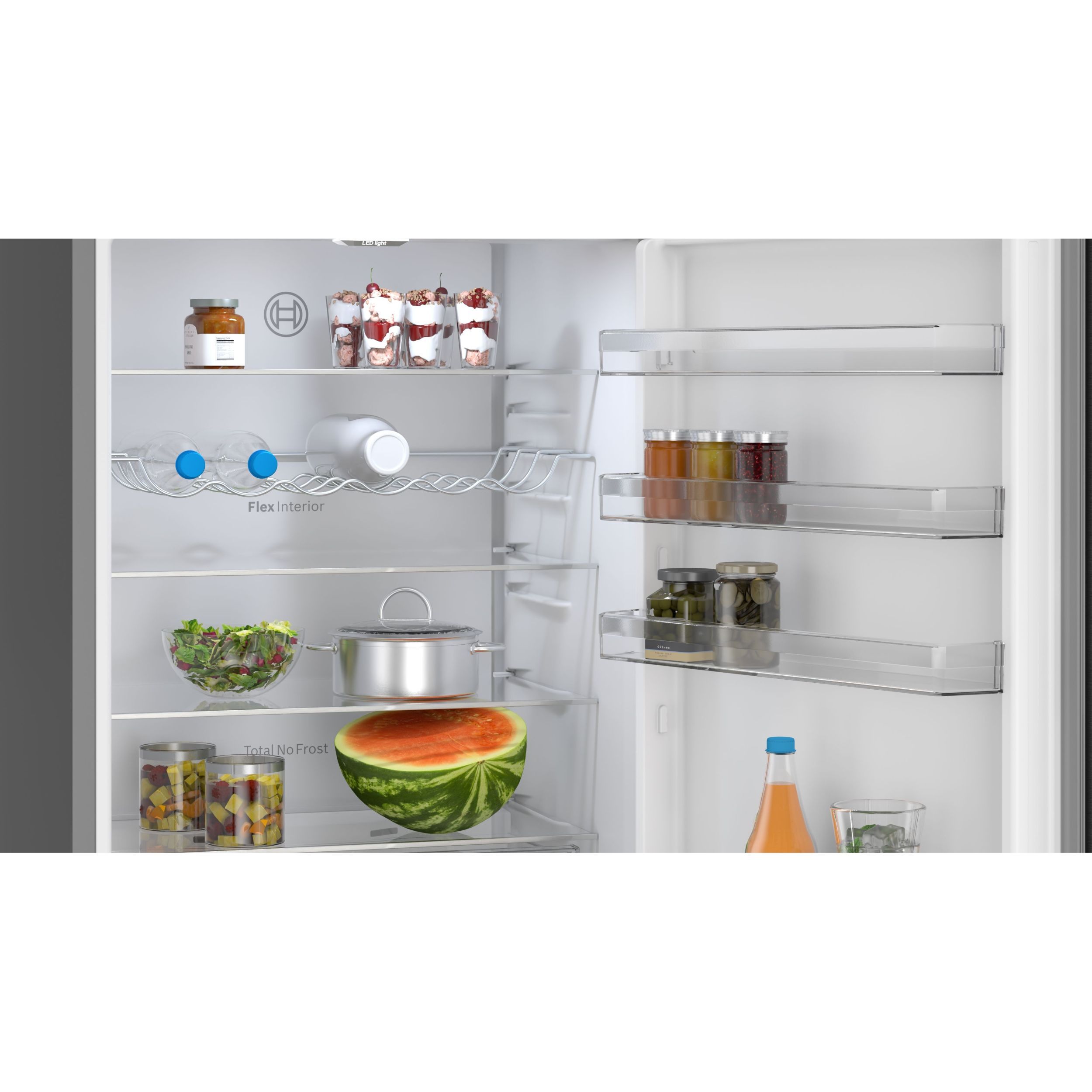 Cu Total No Frost, congelatorul tău nu va mai avea nevoie de dezghețare. Aceasta extrage umiditatea și menține aerul uscat, prevenind formarea gheții pe pereți și alimente. Același principiu se aplică și zonei frigiderului. Spune adio picăturilor de apă și acumulării de gheață pe peretele din spate, pentru un aspect igienic. Mai puțin efort de curățare și dezghețare, mai multă eficiență energetică.