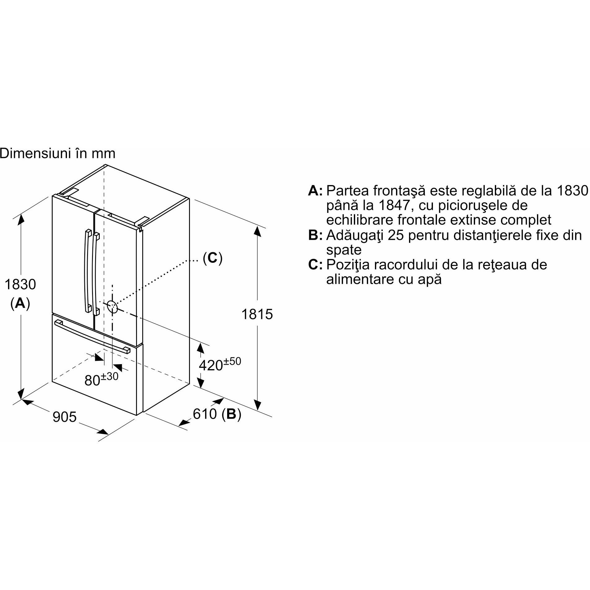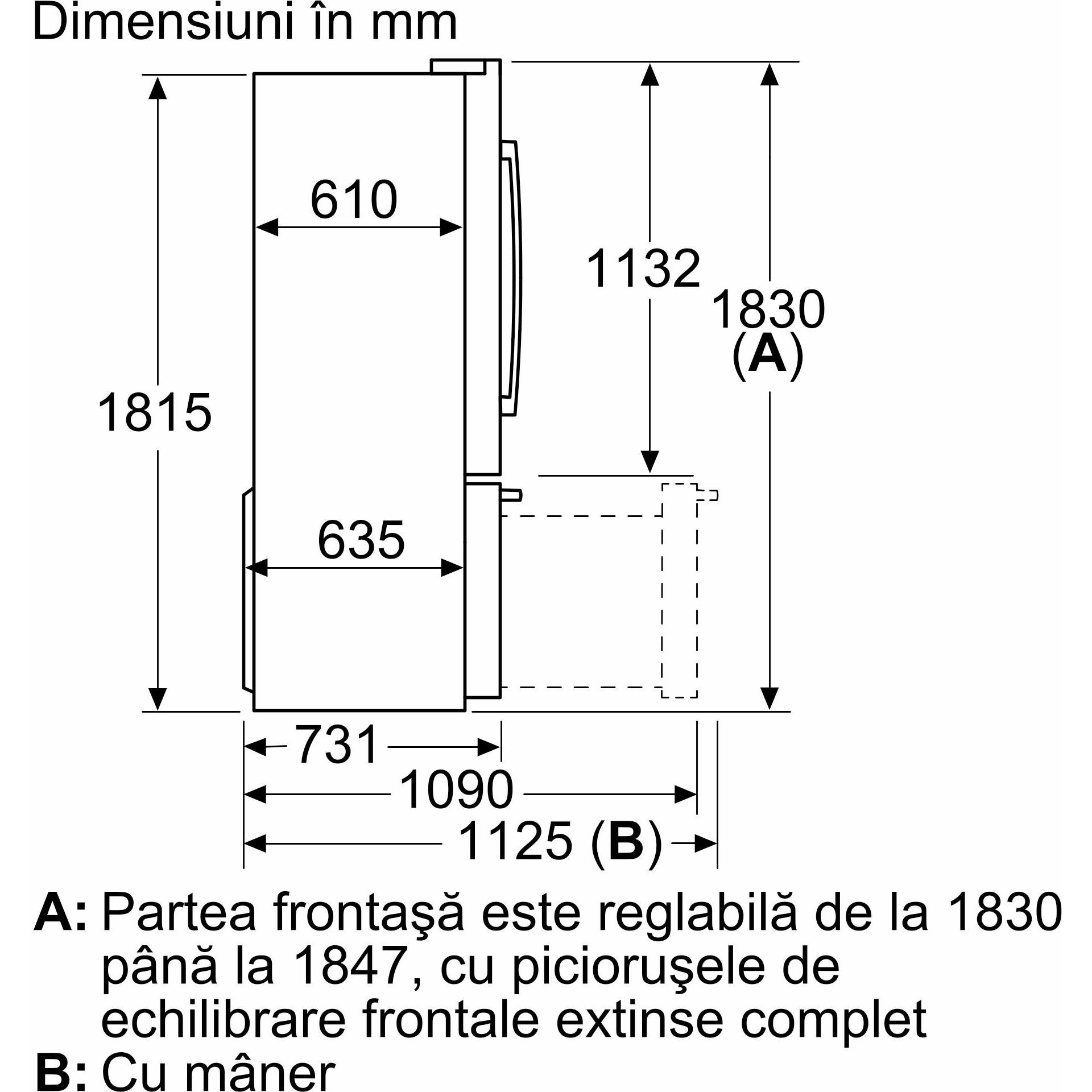 Pentru atingerea nivelului de consum declarat, trebuie folosite distanţierele livrate. Drept rezultat, adâncimea aparatului se va mări cu 3,5 cm. Folosirea fără distanţiere nu afectează funcţionarea aparatului, cu excepţia unei uşoare creşteri a consumului de energie.