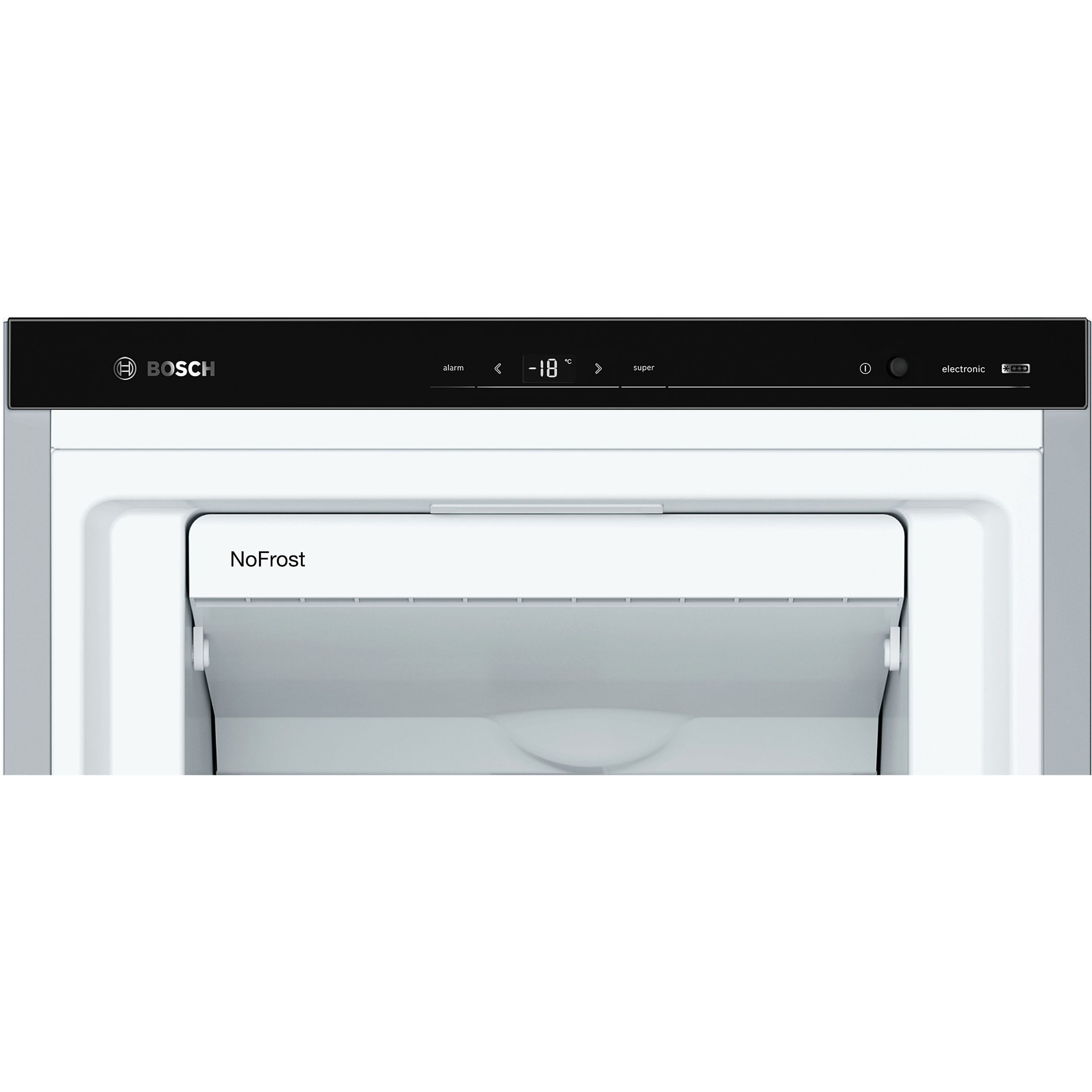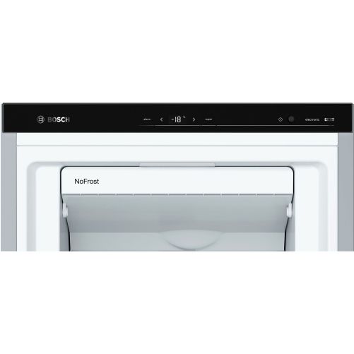 Datorită Freezer Light de la Bosch congelator este perfect iluminat, direct în sertarele deschise. Alimentele congelate sunt ușor vizibile și pot fi localizate în câteva secunde în congelator. Dacă aparatul tău este compatibil cu Home Connect, poți activa de asemenea lumina ambientală prin aplicația Home Connect și ajusta intensitatea luminii în funcție de preferințele tale.