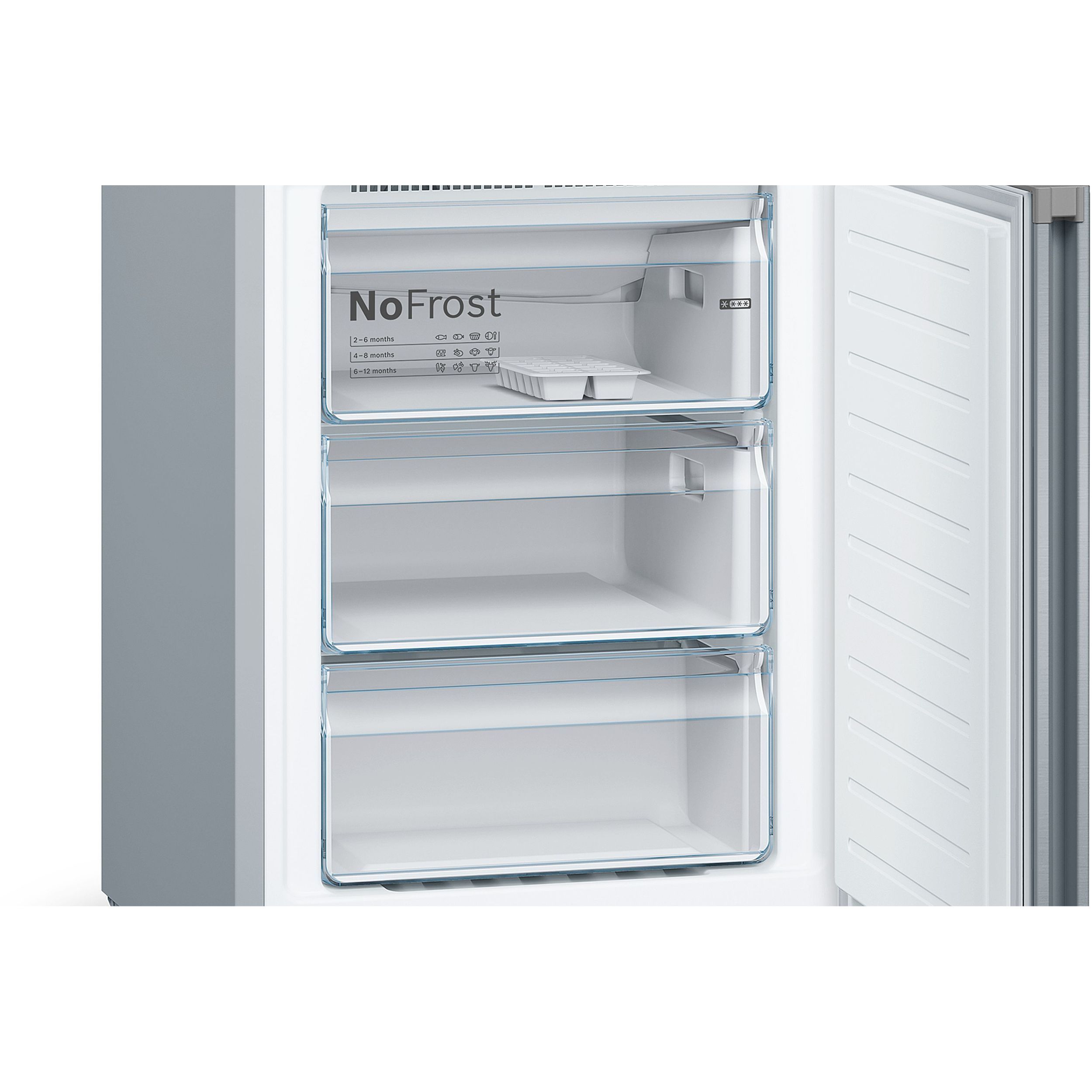 Cu Total No Frost, congelatorul tău nu va mai avea nevoie de dezghețare. Aceasta extrage umiditatea și menține aerul uscat, prevenind formarea gheții pe pereți și alimente. Același principiu se aplică și zonei frigiderului. Spune adio picăturilor de apă și acumulării de gheață pe peretele din spate, pentru un aspect igienic. Mai puțin efort de curățare și dezghețare, mai multă eficiență energetică.