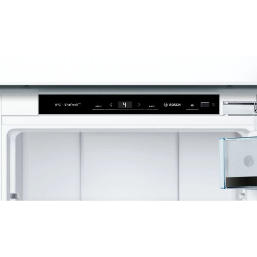 Cu funcția Super Cooling, poți reduce temporar temperatura din frigider înainte de a merge la cumpărături. Astfel, alimentele proaspăt achiziționate sunt păstrate la temperatura optimă. Este suficient să apeși un buton pentru a scădea temperatura cu până la 2°C. Iar pentru a evita consumul inutil de energie, funcția revine automat la setările normale după aproximativ 6-15 ore. În plus, dacă frigiderul tău este conectat, poți activa funcția Super Cooling direct din aplicația Home Connect.
