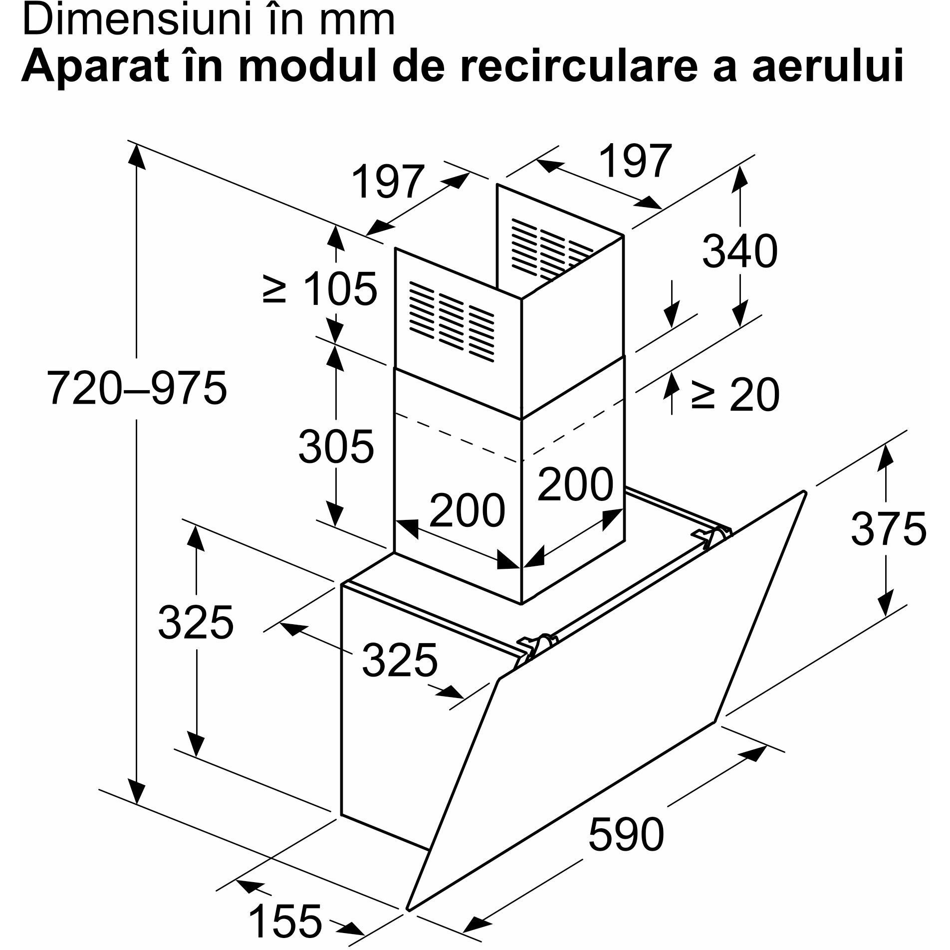 Dimensiuni pentru montaj ȋn mod recirculare (ÎxLxA): 720-975 x 590 x 325 mm