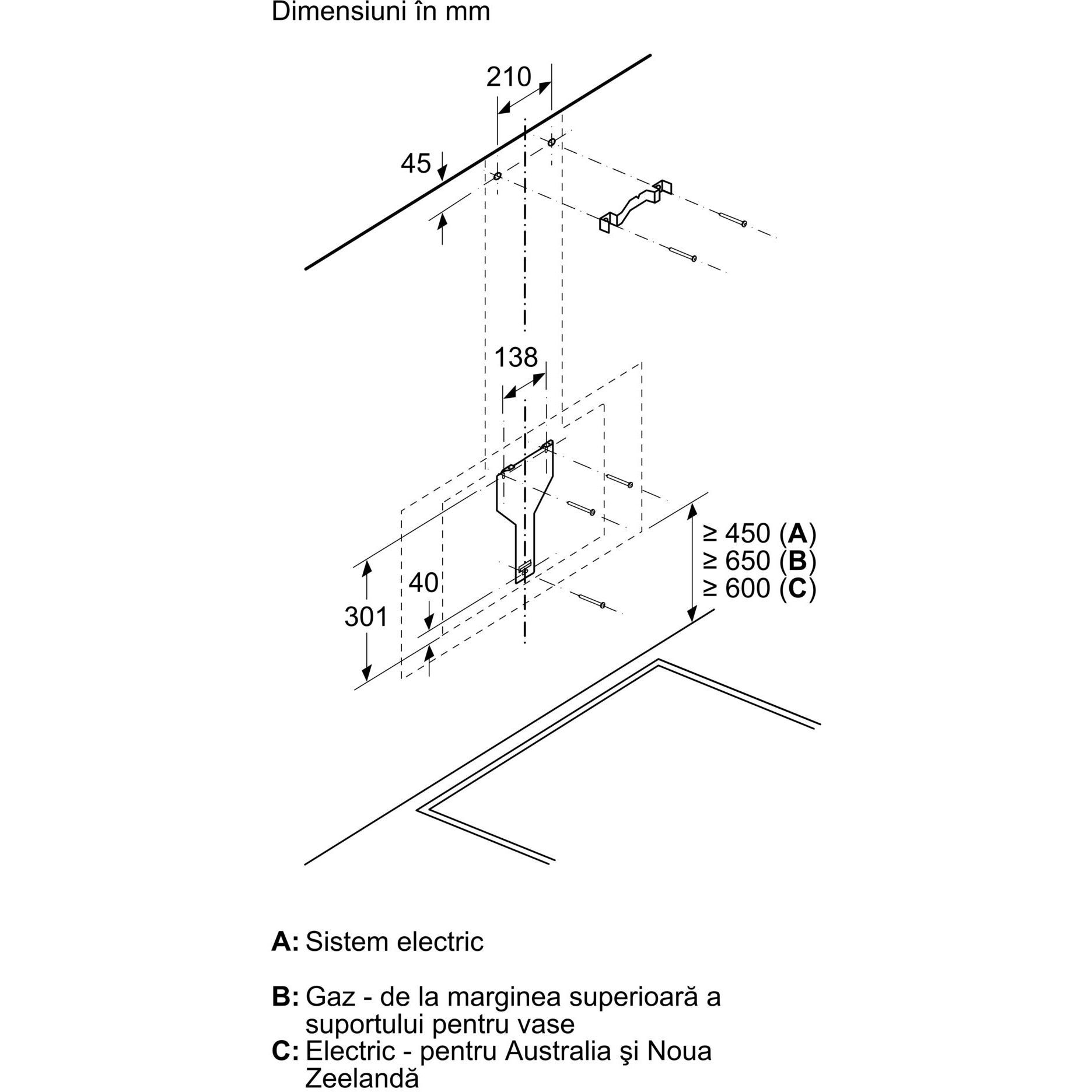 Vă rugăm sa consultați dimensiunile specificate în schița de instalare