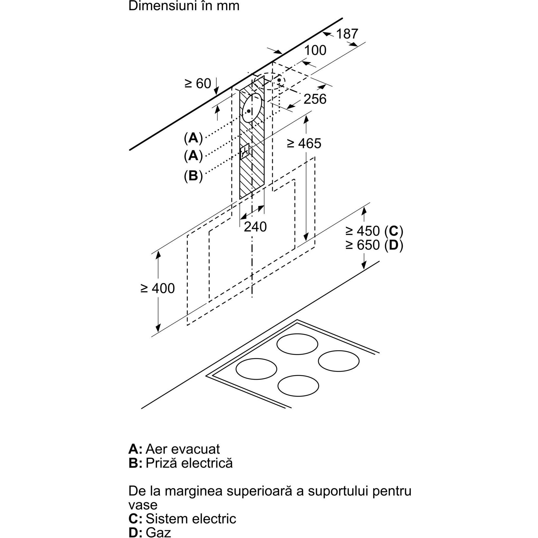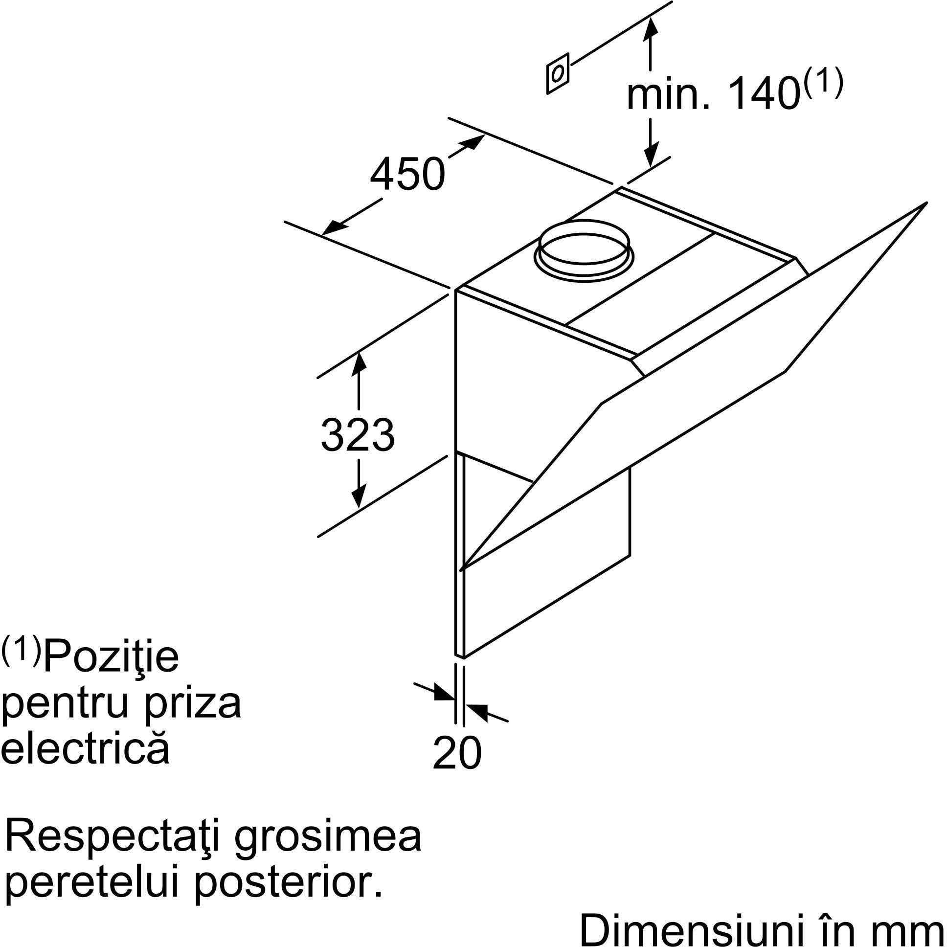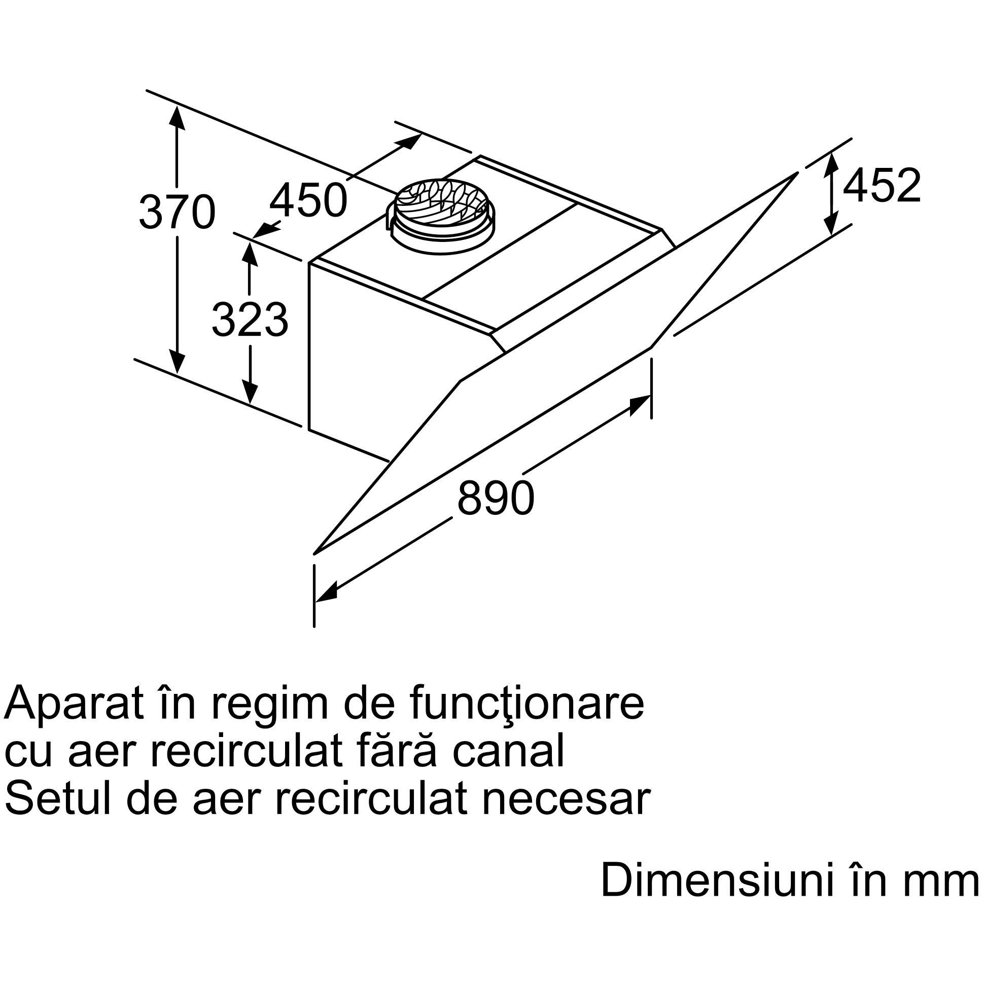 Dimensiuni (mod recirculare), fără horn (ÎxLxA): 452 mm x 890 x 499 mm