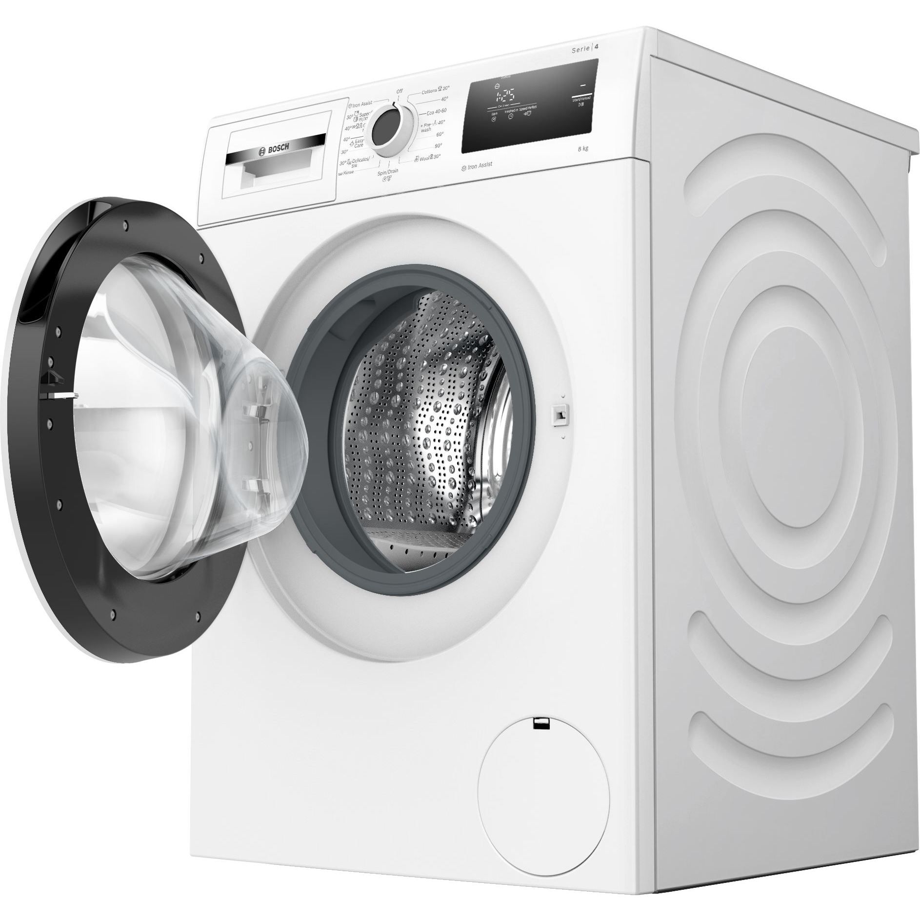 - Programe speciale: Iron Assist: program cu aburi pentru reducerea cutele hainelor uscate, Evacuare/Centrifugare, Rapid/Mix, Clătire, Super rapid 30'/15',