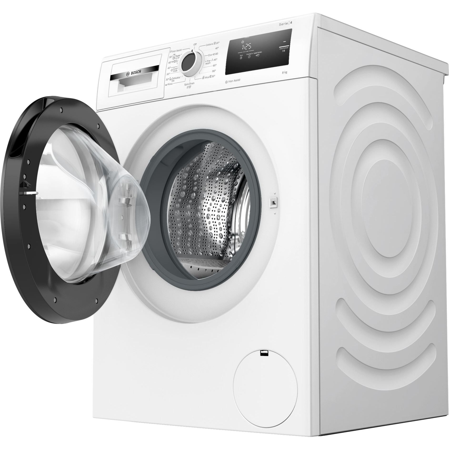 - Programe speciale: Iron Assist: program cu aburi pentru reducerea cutele hainelor uscate, Evacuare/Centrifugare, Rapid/Mix, Clătire, Super rapid 30'/15',