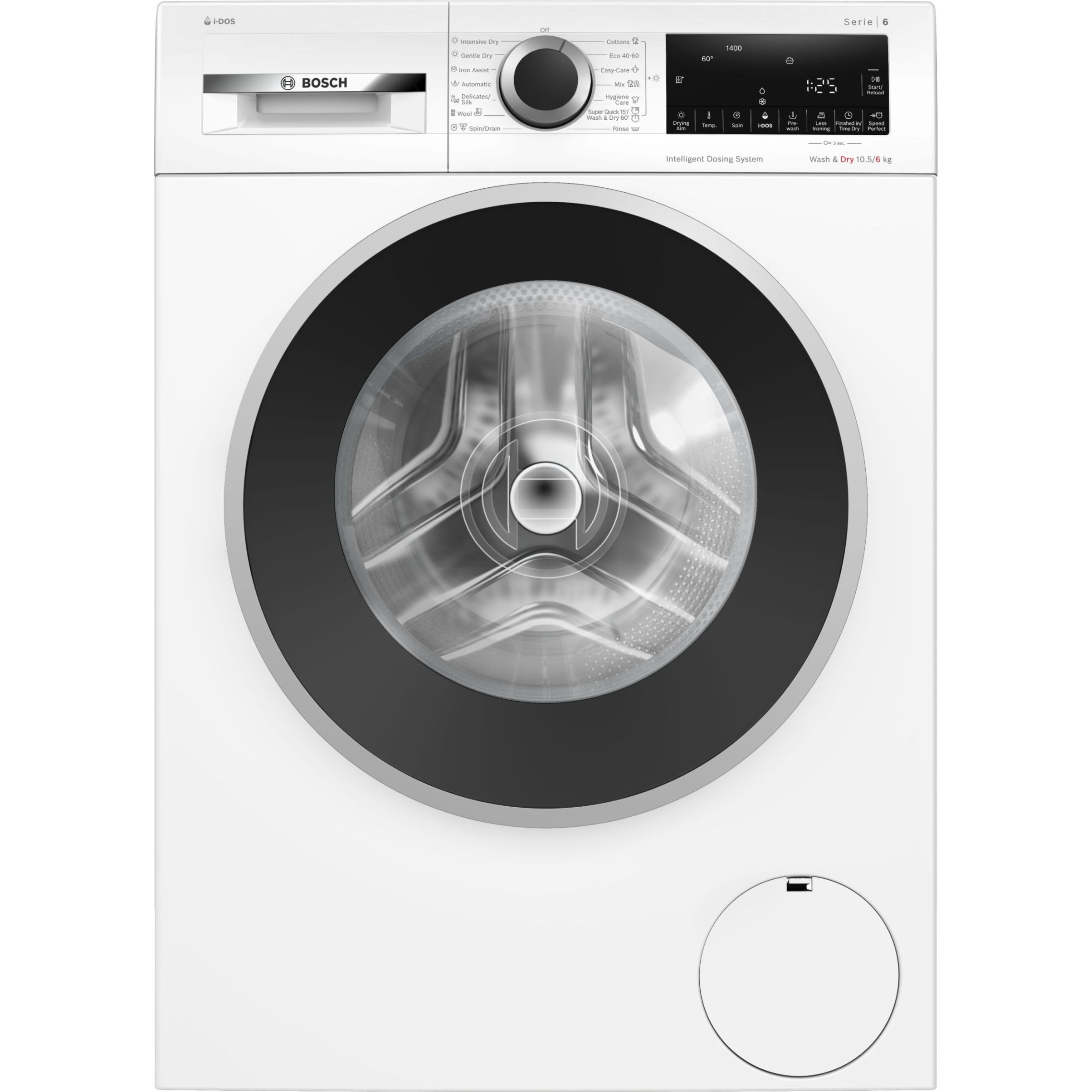 Mașină de spălat cu uscător cu i-DOS sistem de dozare automată a detergentului și cu clasa energetică A Economisești apă, detergent și energie. Dozează automat, spălă și uscă prin apăsarea unui buton.